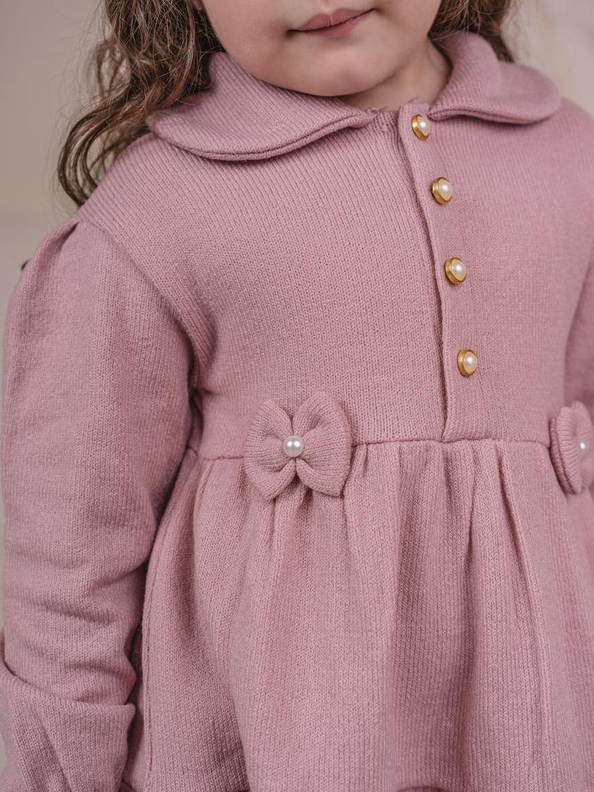 Vestido Sobretudo Infantil Tricot + Boina Roupa para Menina Estilosa com Manga Longa, botão, Lacinho