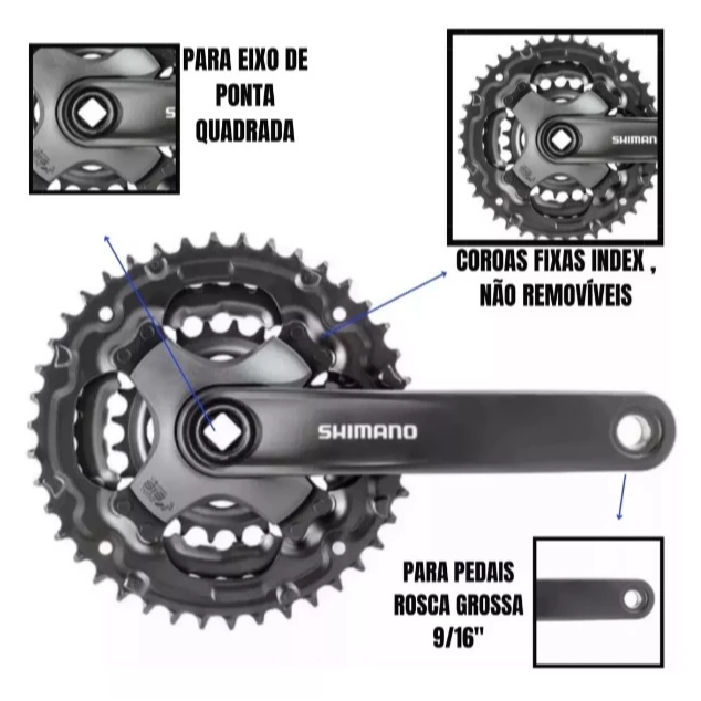 Kit Shimano Bike 21 Marchas Transmissão Completa C/ Pedivela Reduzido 42d, Câmbios e Catraca Mega 7v