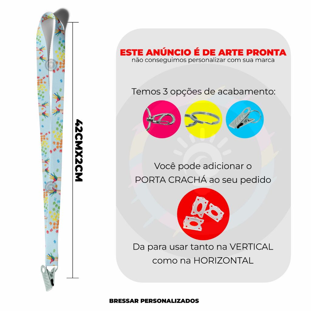 Cordão Identificação Autismo Mãozinha Argola Mosquete Jacaré Porta Crachá