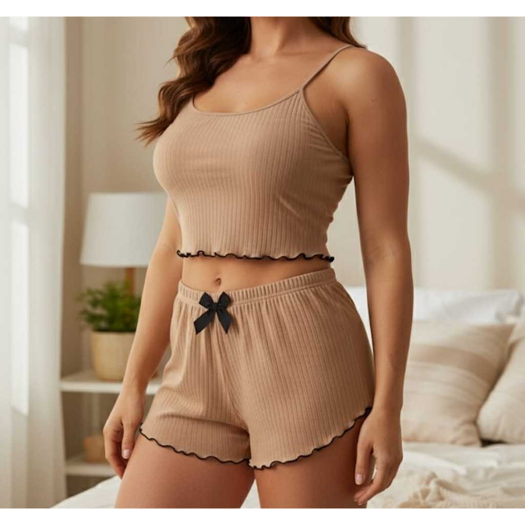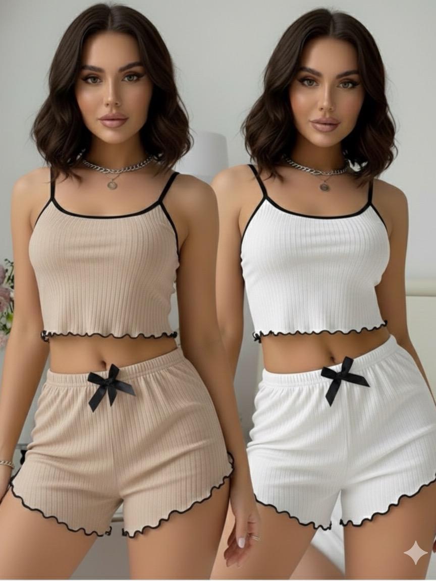 Pijama Baby doll Verde branco vermelho preto bege alça verão short doll blogueirinha