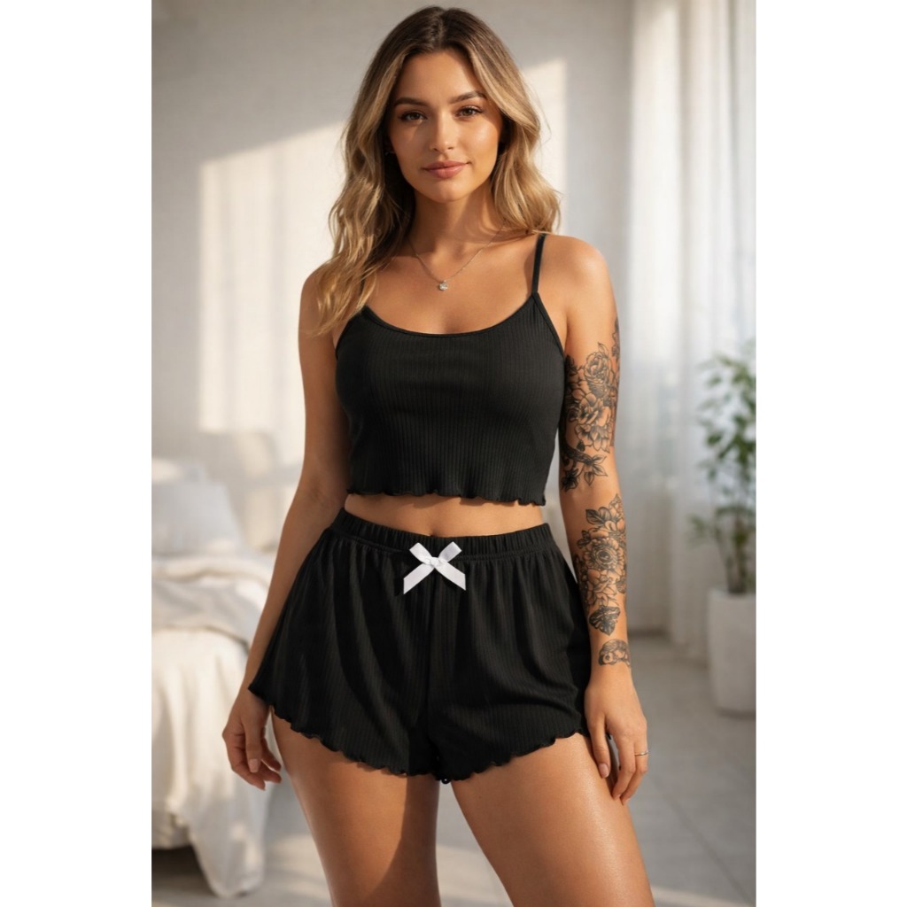 Baby doll short doll pijama feminino alça verão confortável sexy