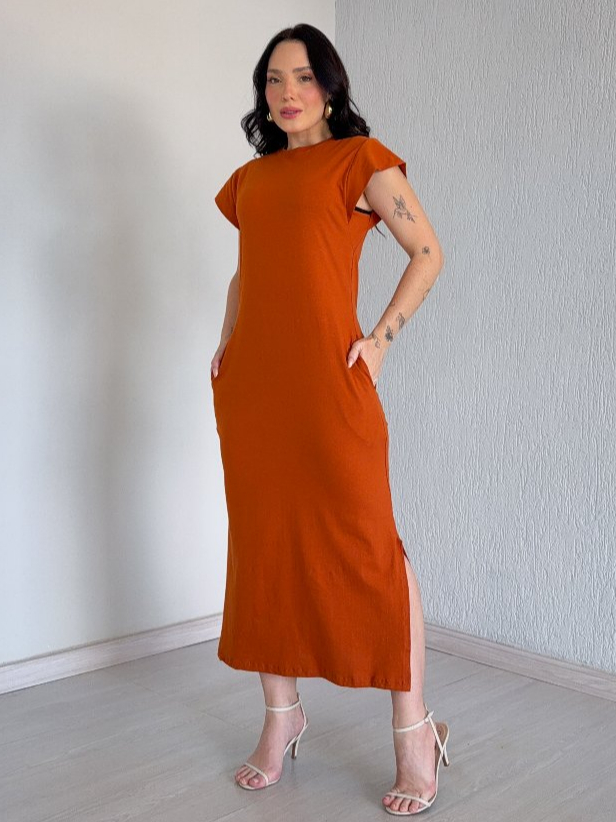 Vestido Midi Muscle Tee Malha Premium 100% Algodão - Confortável