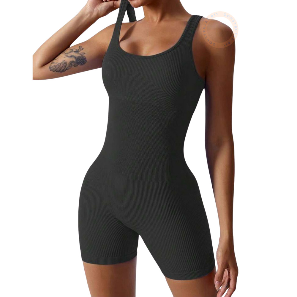 Macaquinho Fitness Canelado Macacão Academia Premium Sem Costura Zero Transparencia
