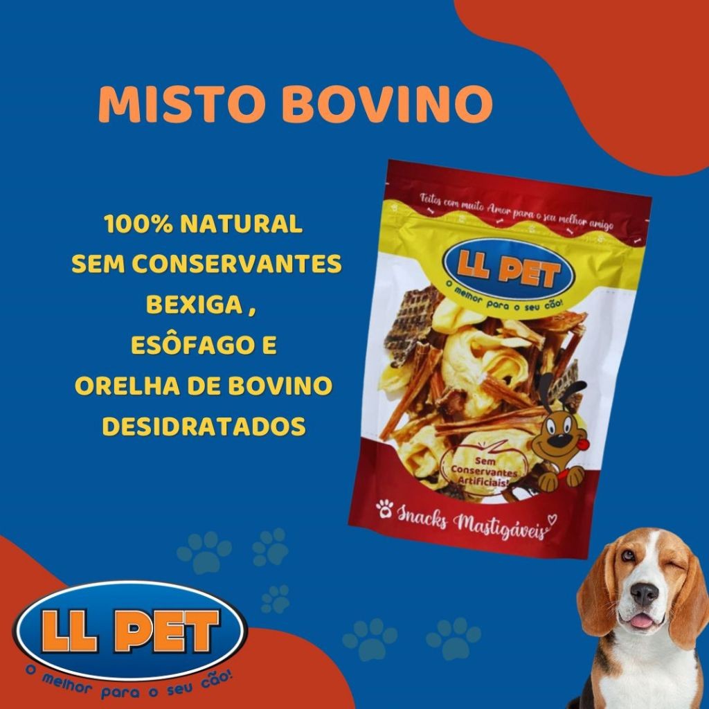 Petiscos Snacks Mordedores Naturais Desidratados Misto Bovino LL Pet (100g cada)