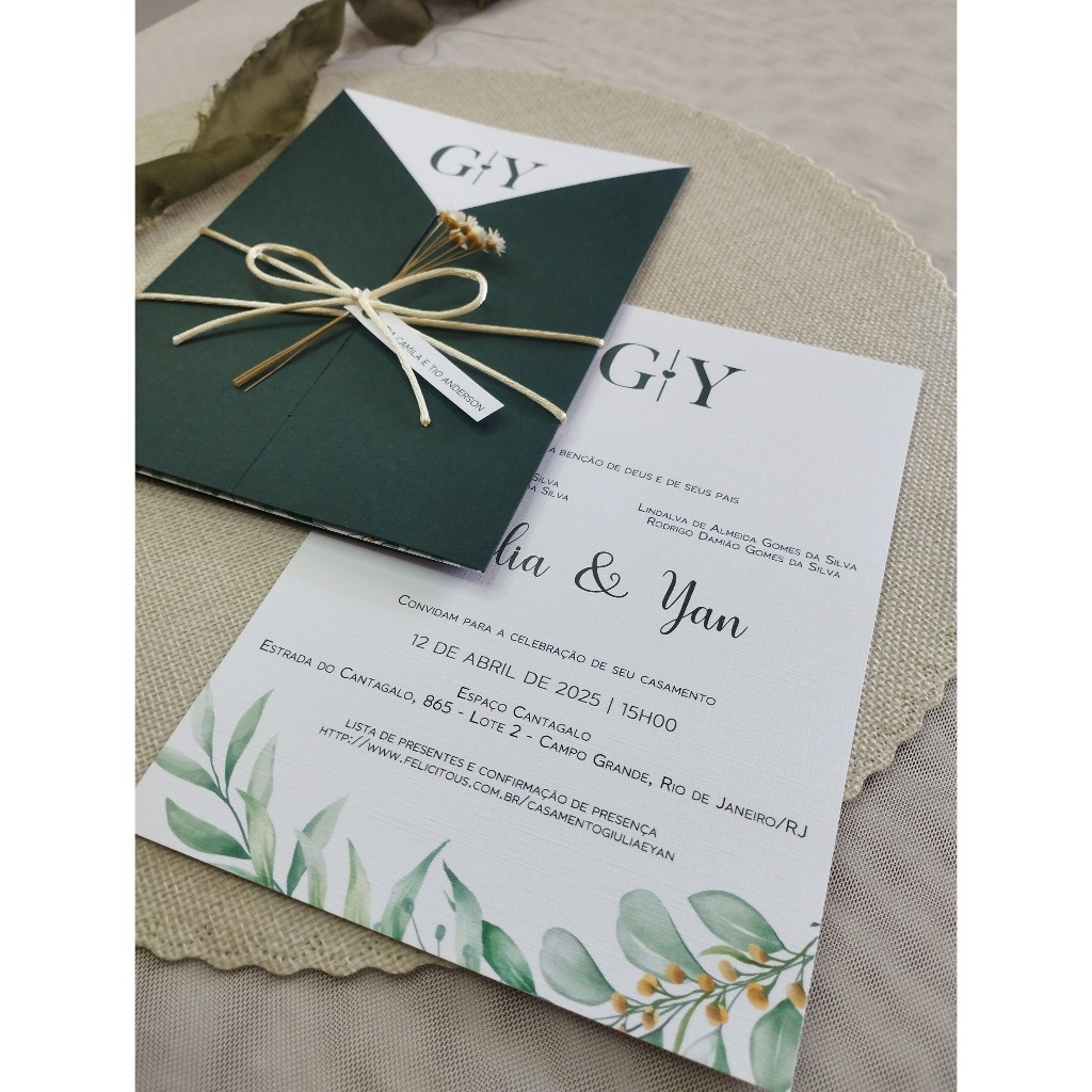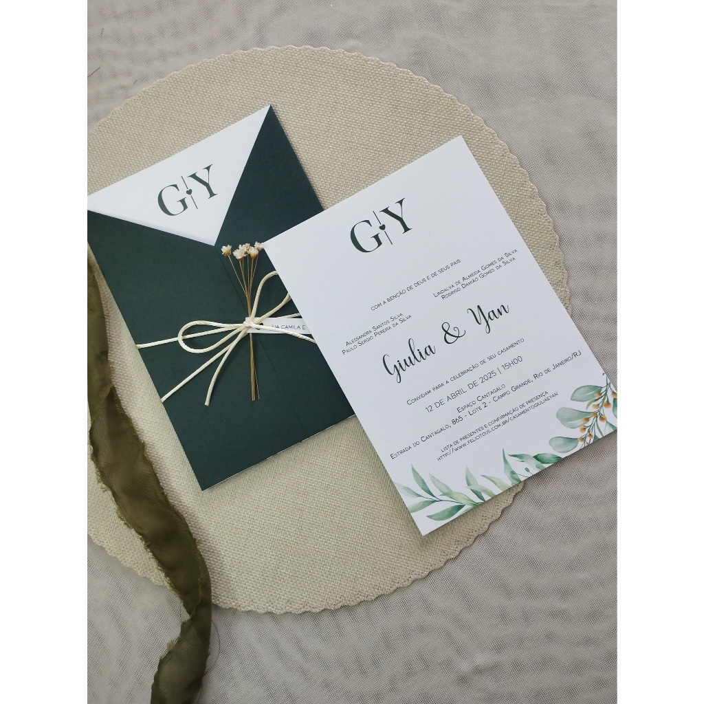 Convite de Casamento | FAZEMOS TODAS AS CORES | Personalizado | Convite com cordão e flores secas |