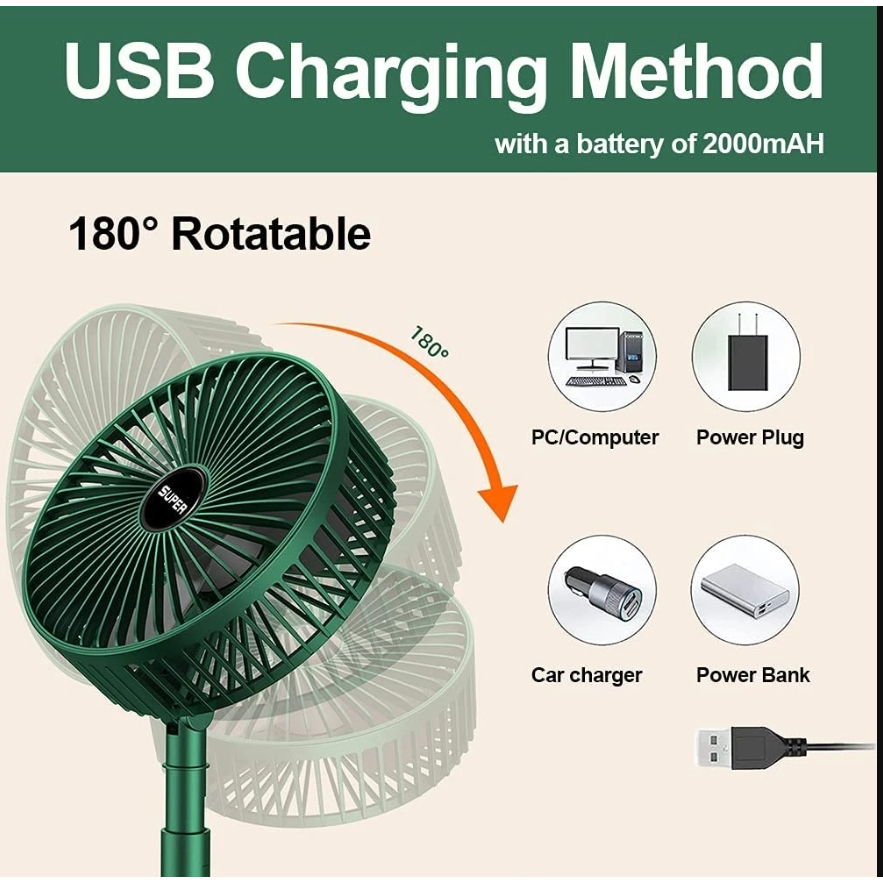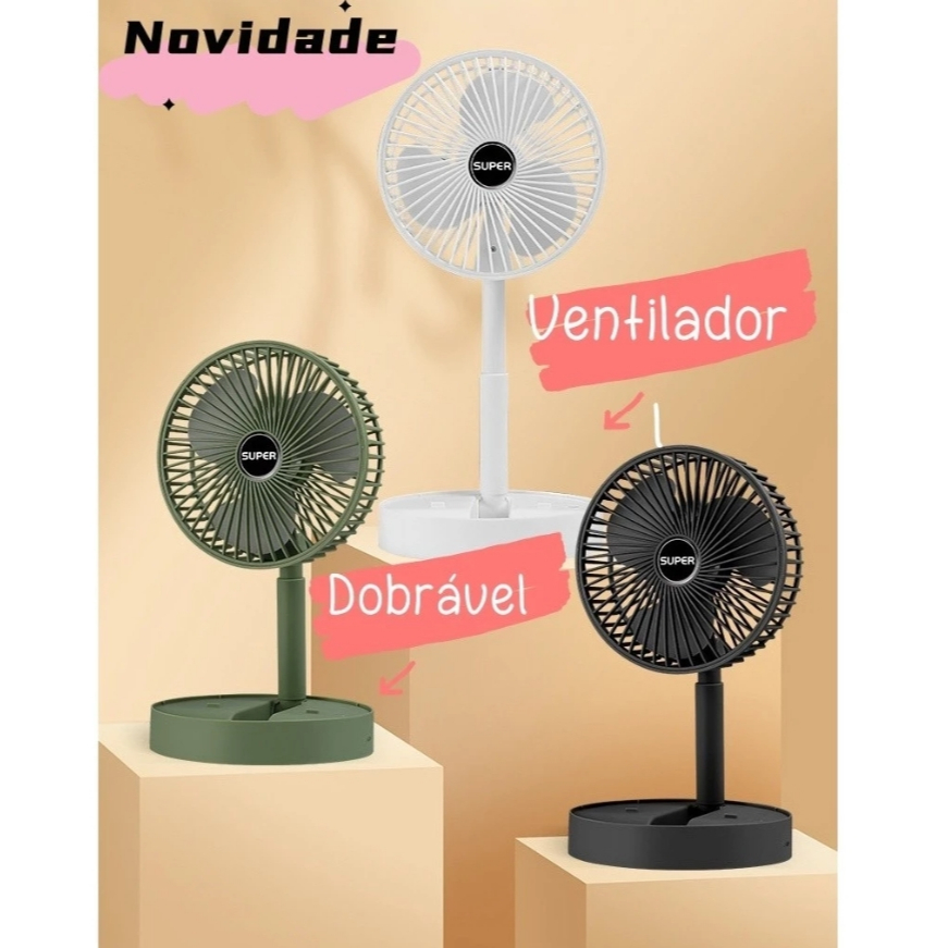 Mini Ventilador De Mesa Portátil Retrátil Dobrável USB Recarregável Sem Fio