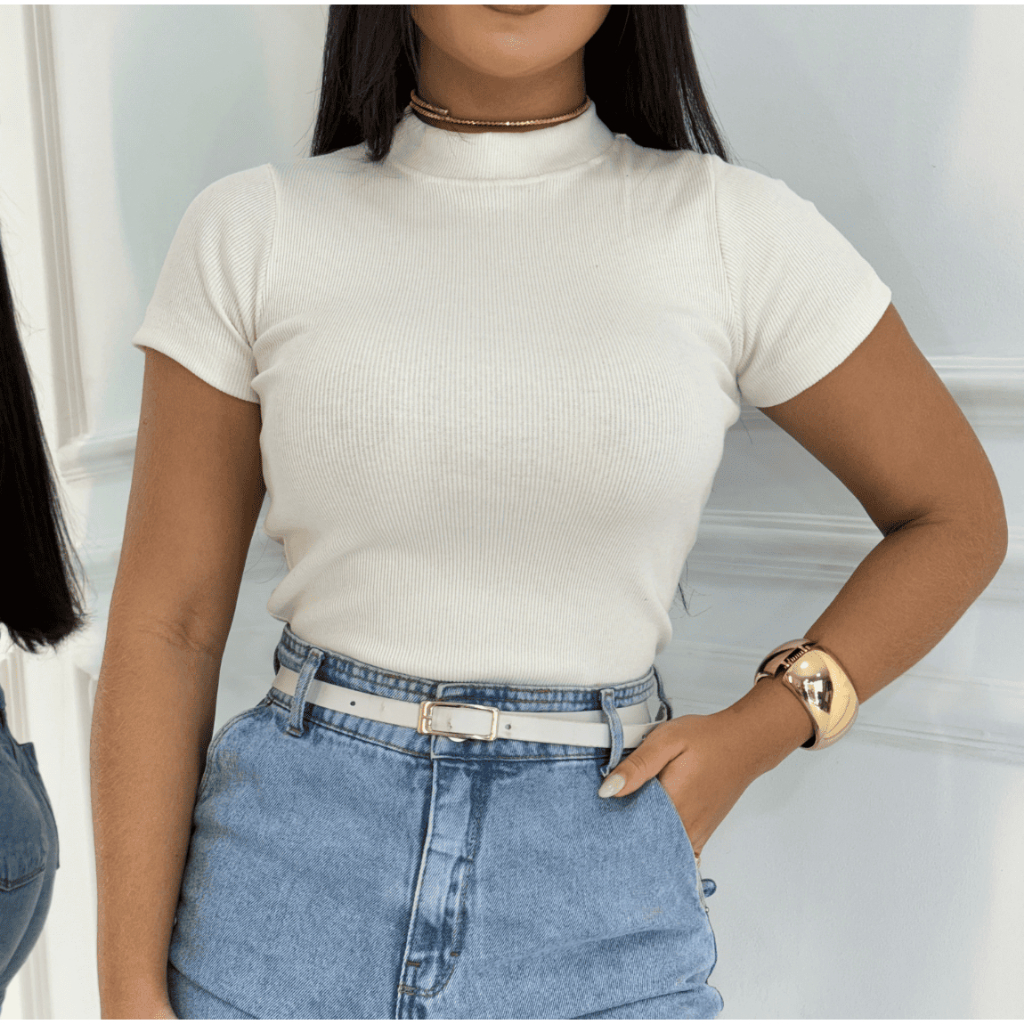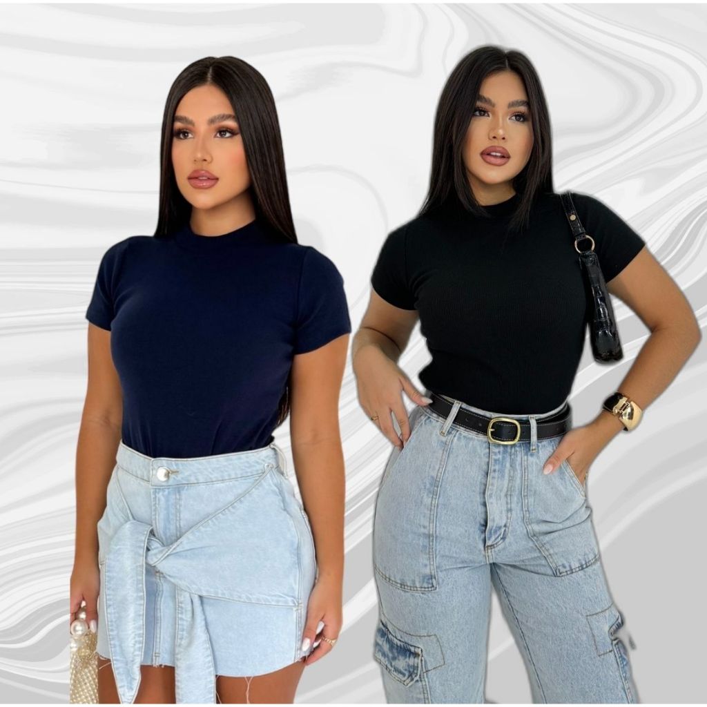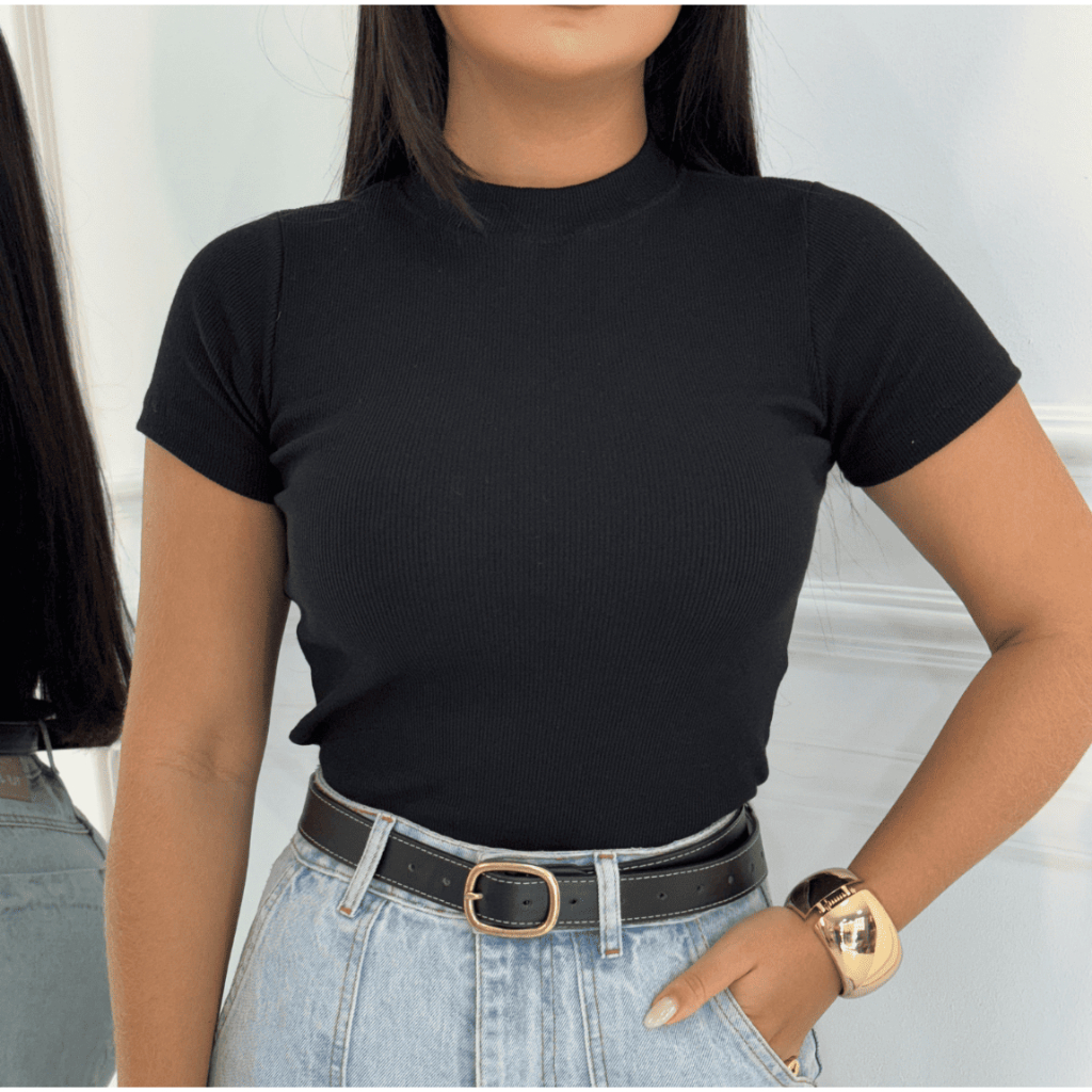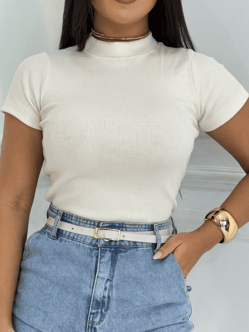 Blusinha Feminina Camiseta Canelada Básica Blusa Elegante Dia a Dia Manga Curta Verão