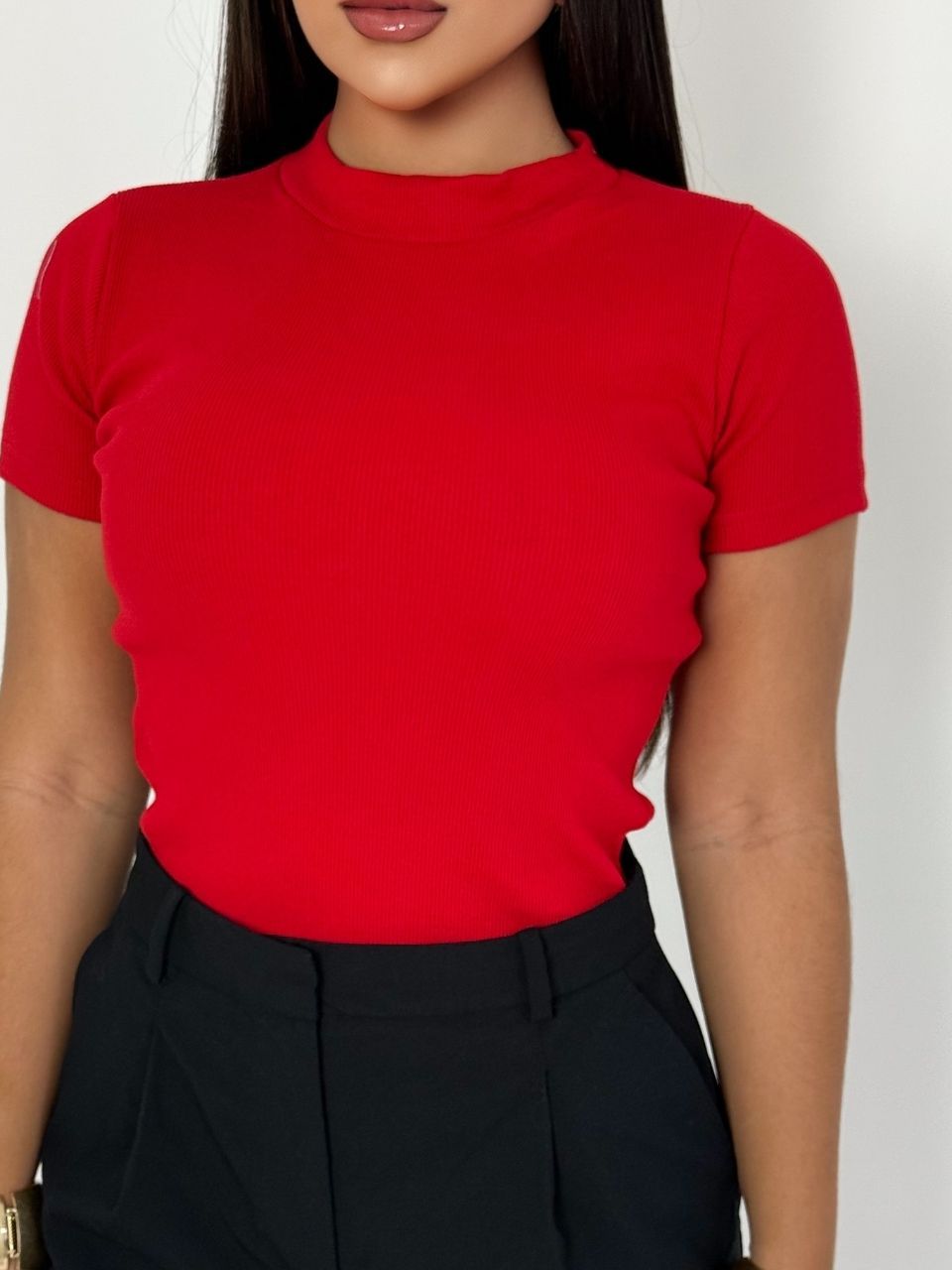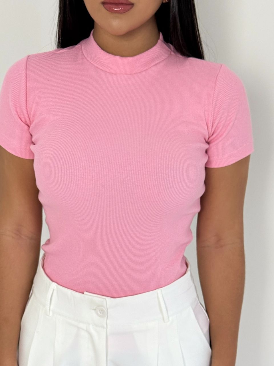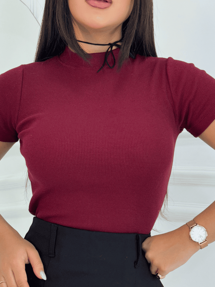 Blusinha Feminina Camiseta Canelada Básica Blusa Elegante Dia a Dia Manga Curta Verão