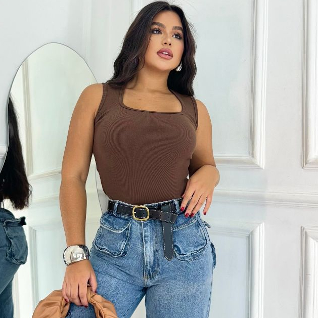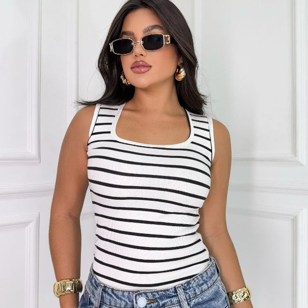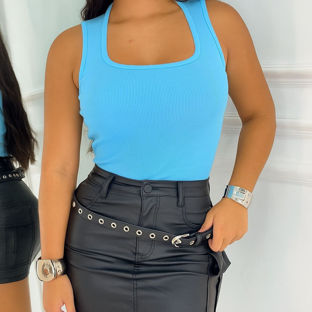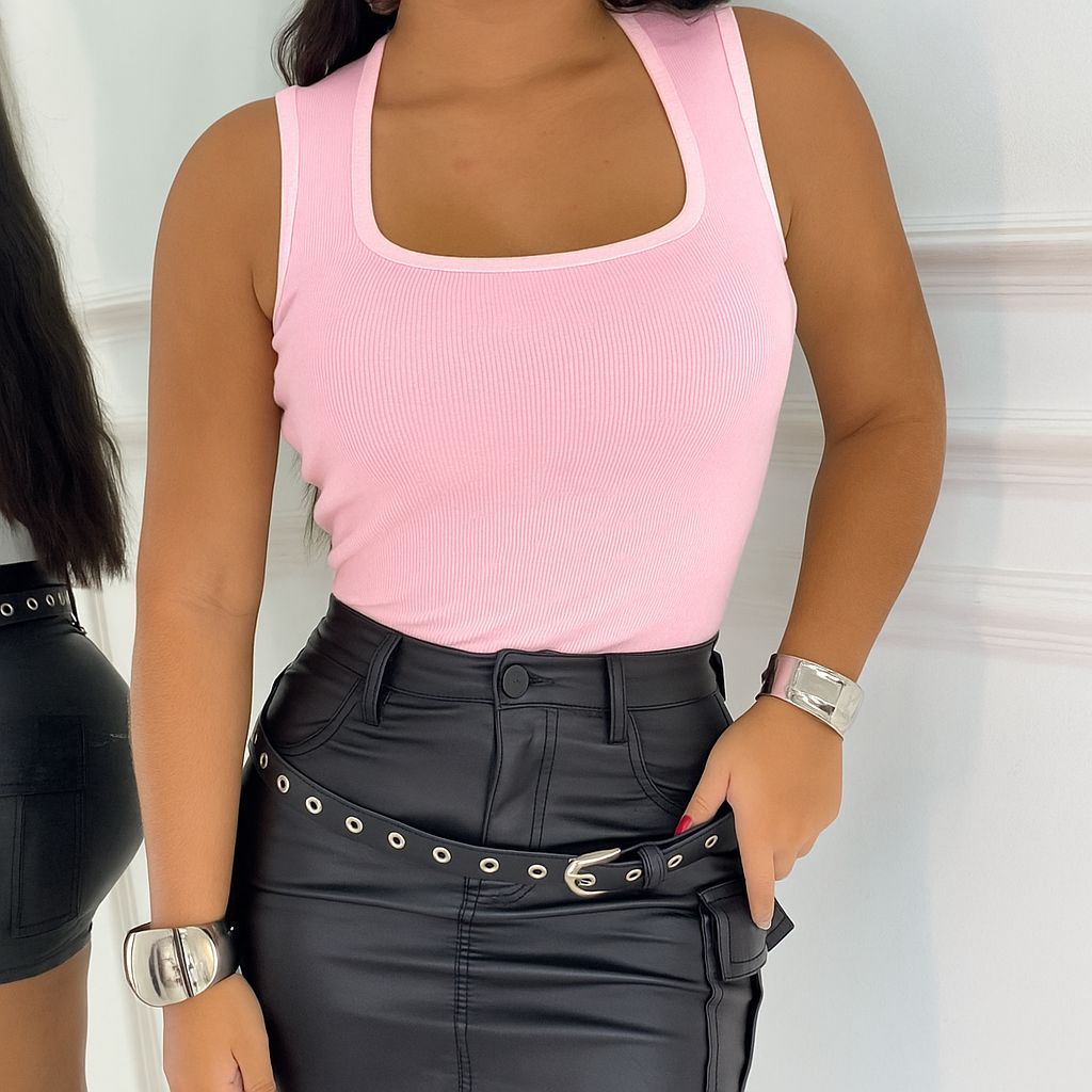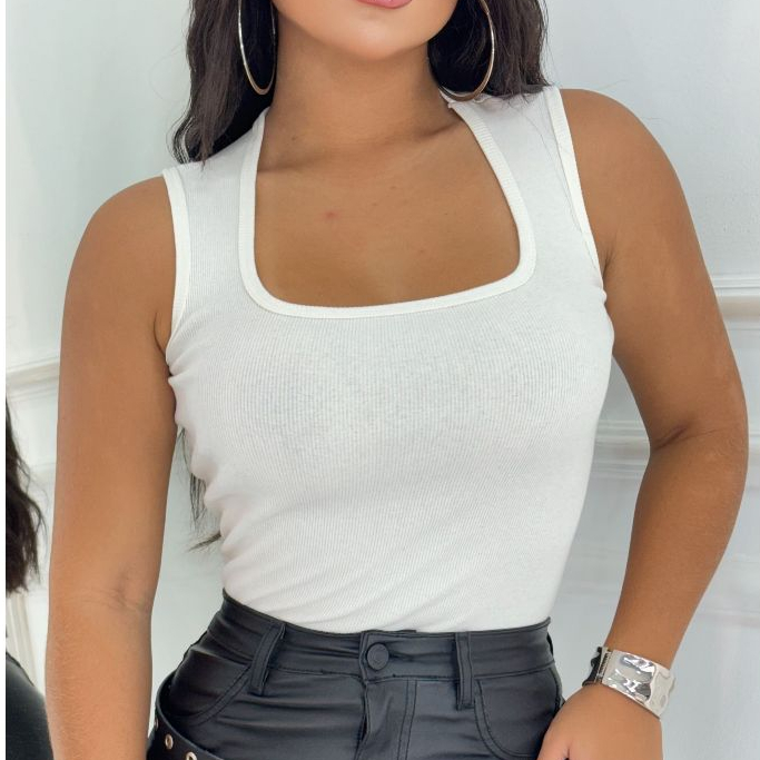 Regata Decotinho Quadrado Feminina Canelada Blusinha Básica Tendencia Gringa Verão Carnaval