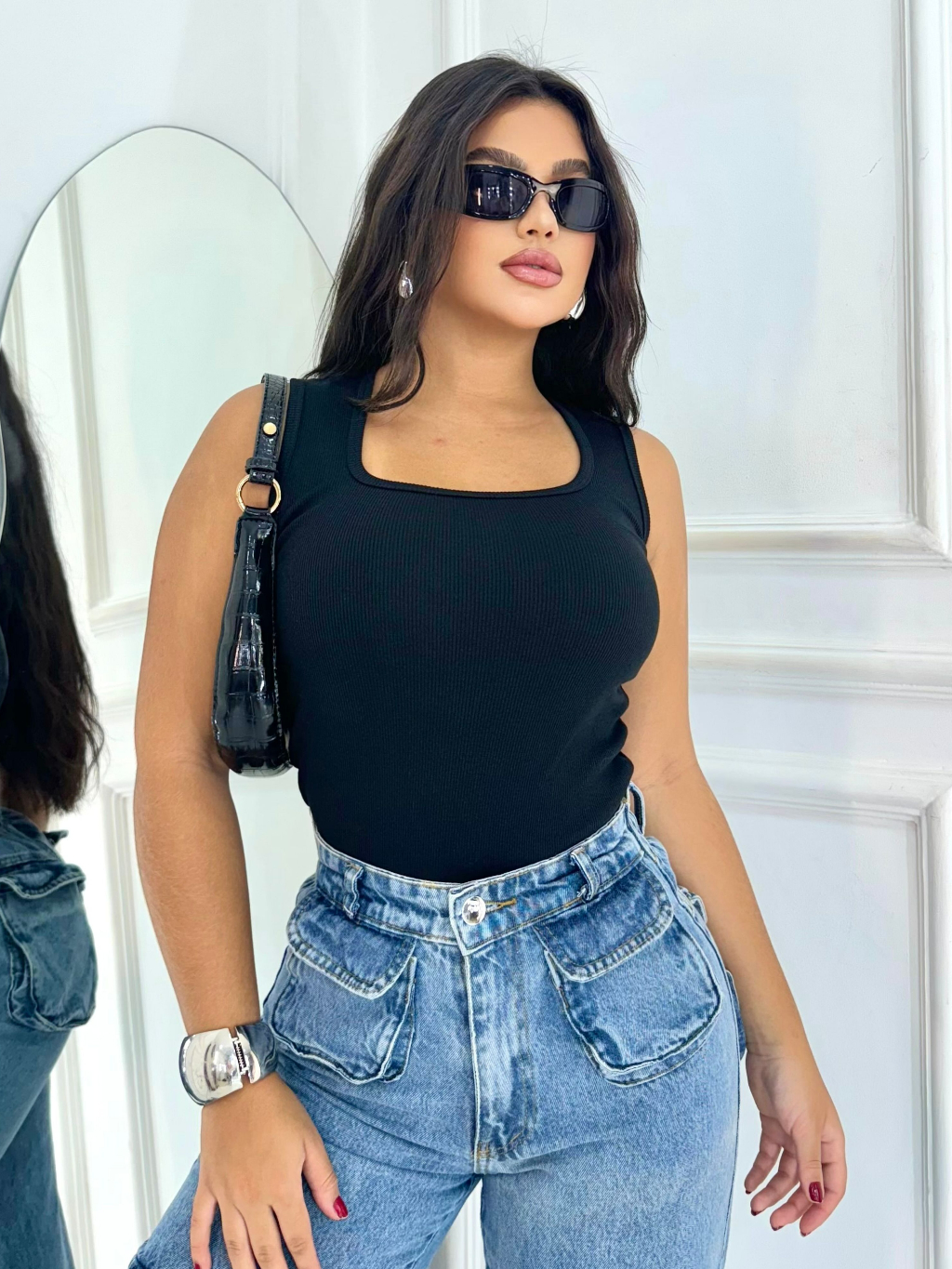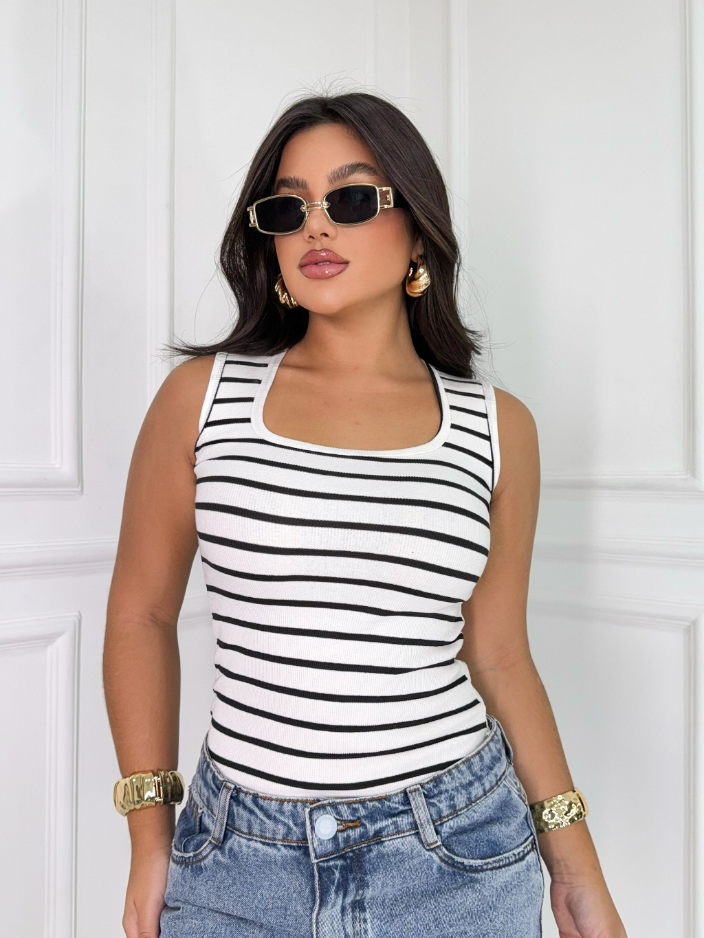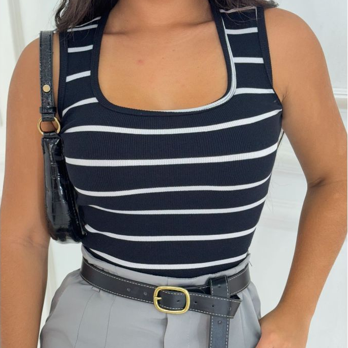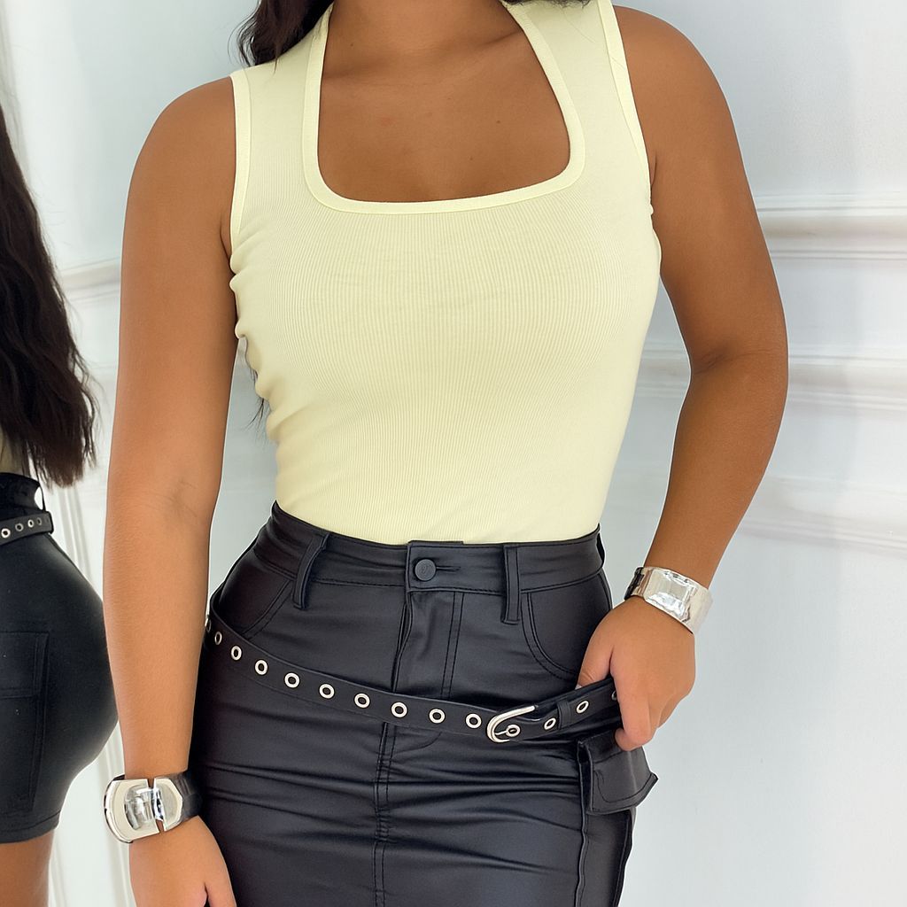 Regata Decotinho Quadrado Feminina Canelada Blusinha Básica Tendencia Gringa Verão Carnaval