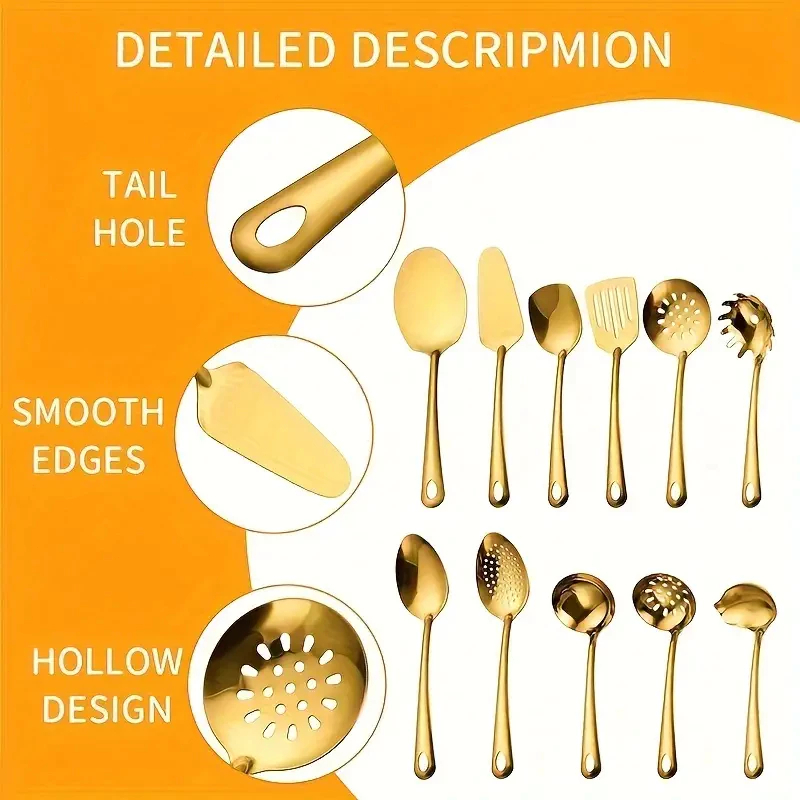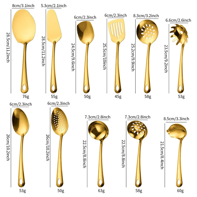 11 peças conjunto de utensílios de cozinha banhados a ouro