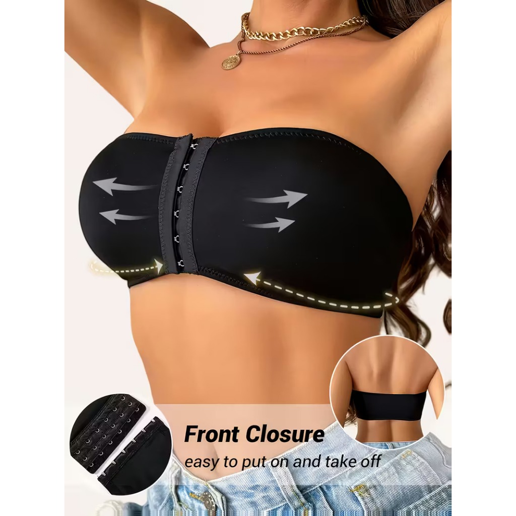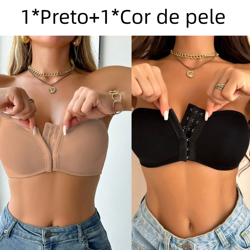 Sutiã Tomara que Caia Fecho Frontal Três Níveis Top Sem Alça Reforçado Bojo Removível Preto Cor de pele