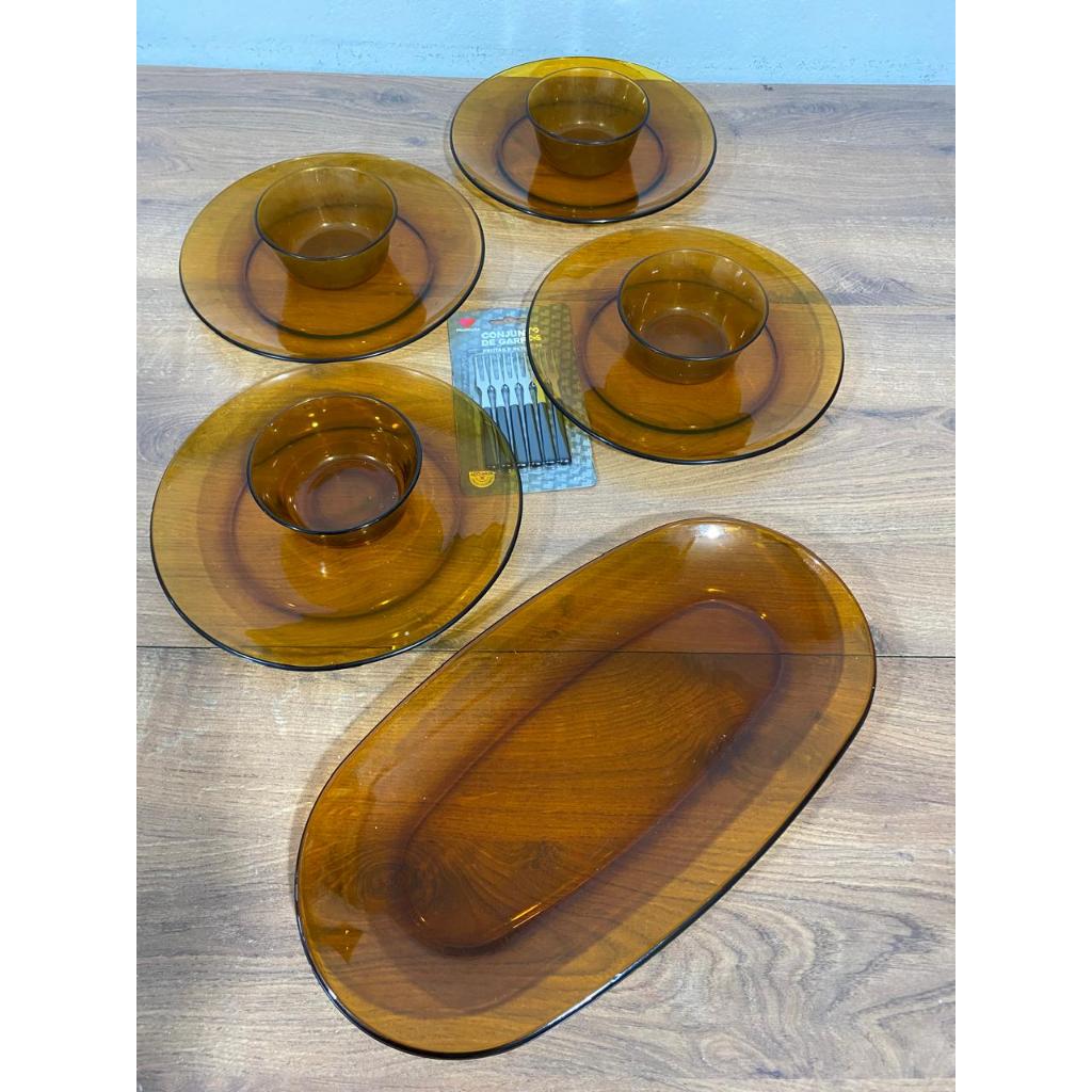 Conjunto Duralex Ambar Raridade em excelente estado