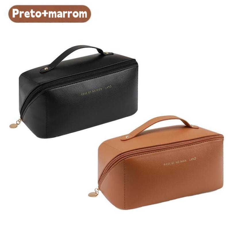 Kit 2/1 PCS Bolsa Necessaire Feminino Cosmético De Couro PU De Grande Capacidade Em Alto Qualidade
