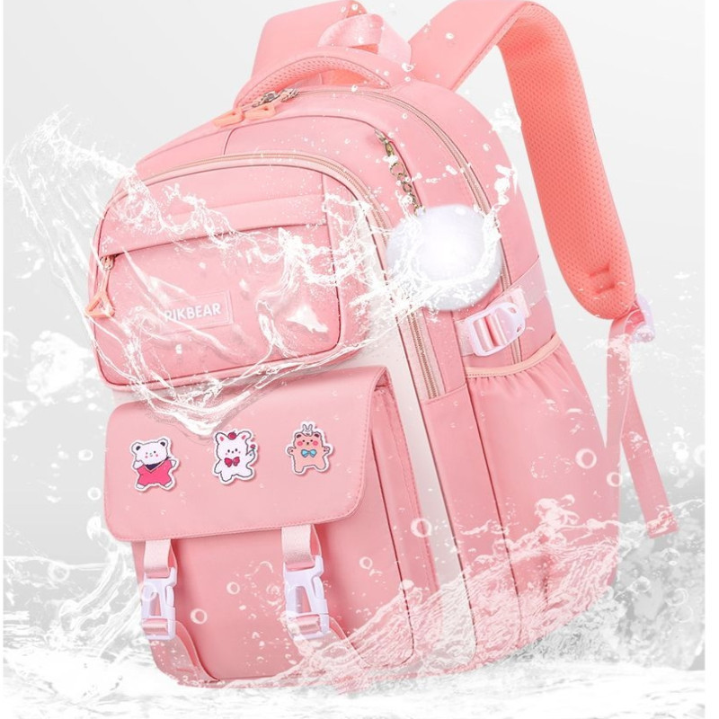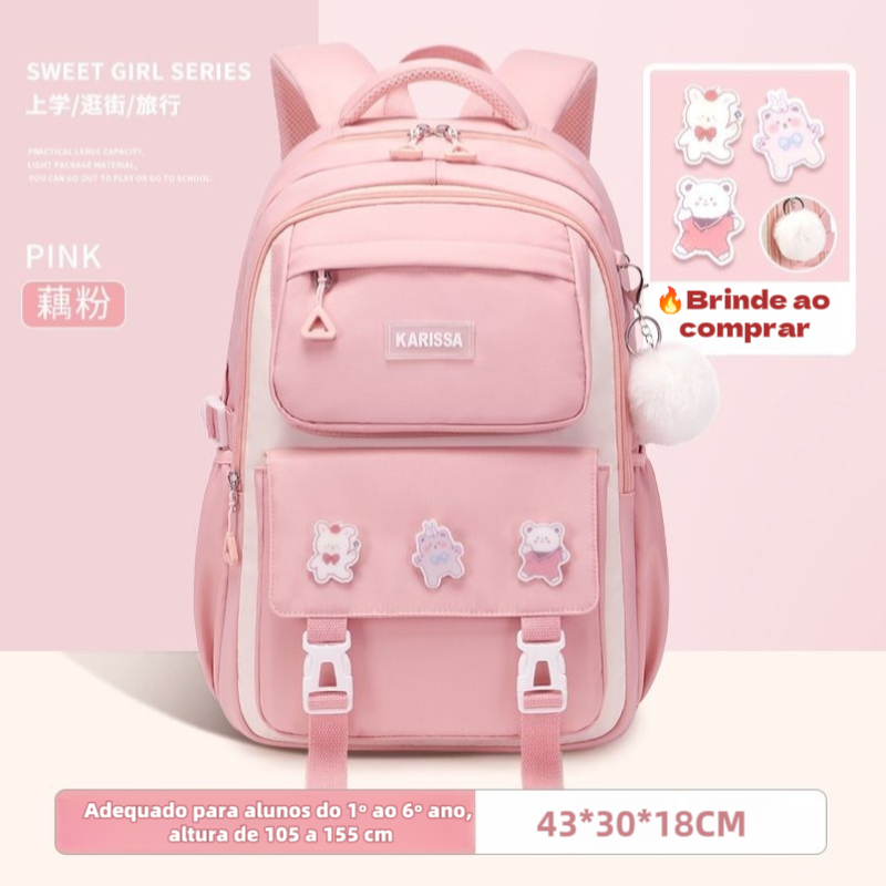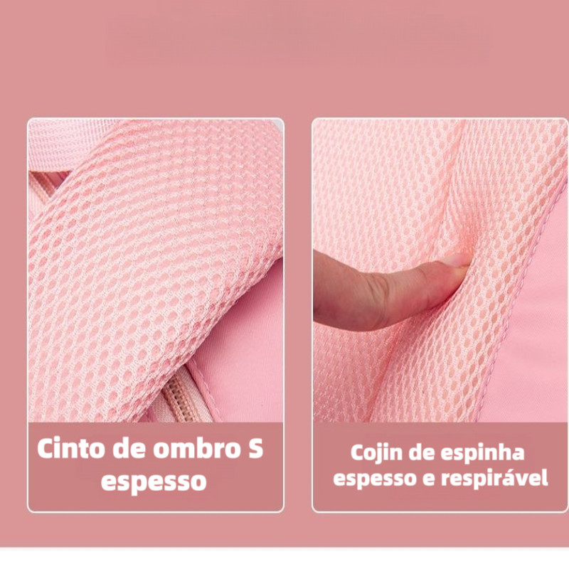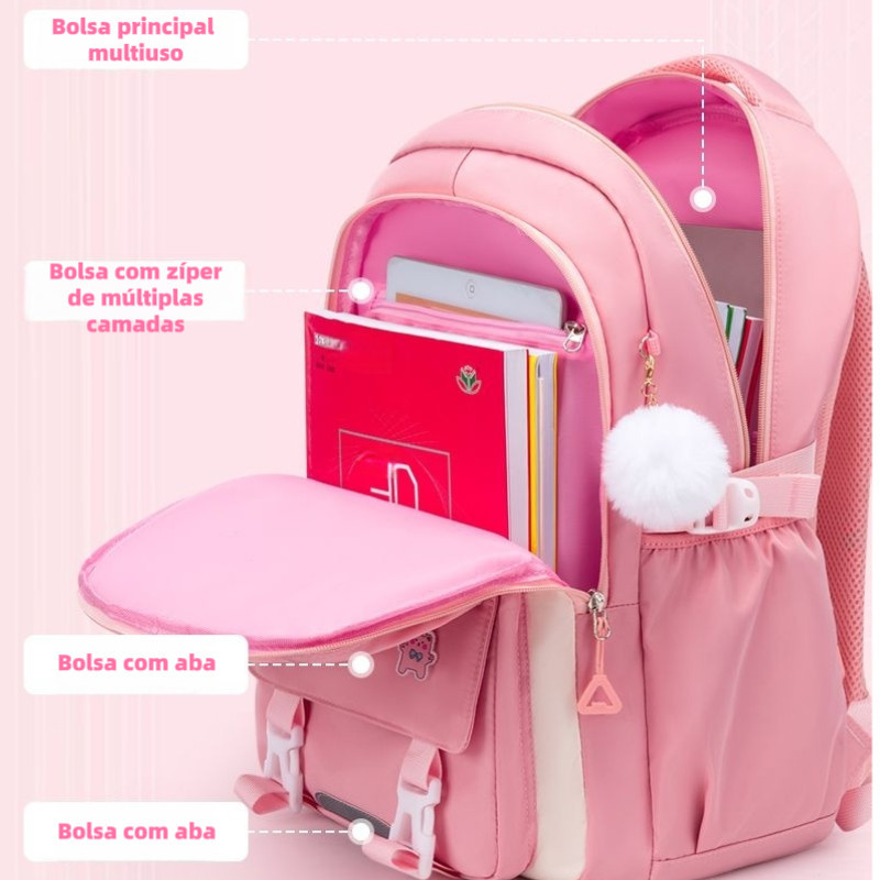 Mochila Escolar Menina Abertura 180° Com Pompom Grande CapacidadeJuvenil Leve Reforçada Princesa Viagem Passeio