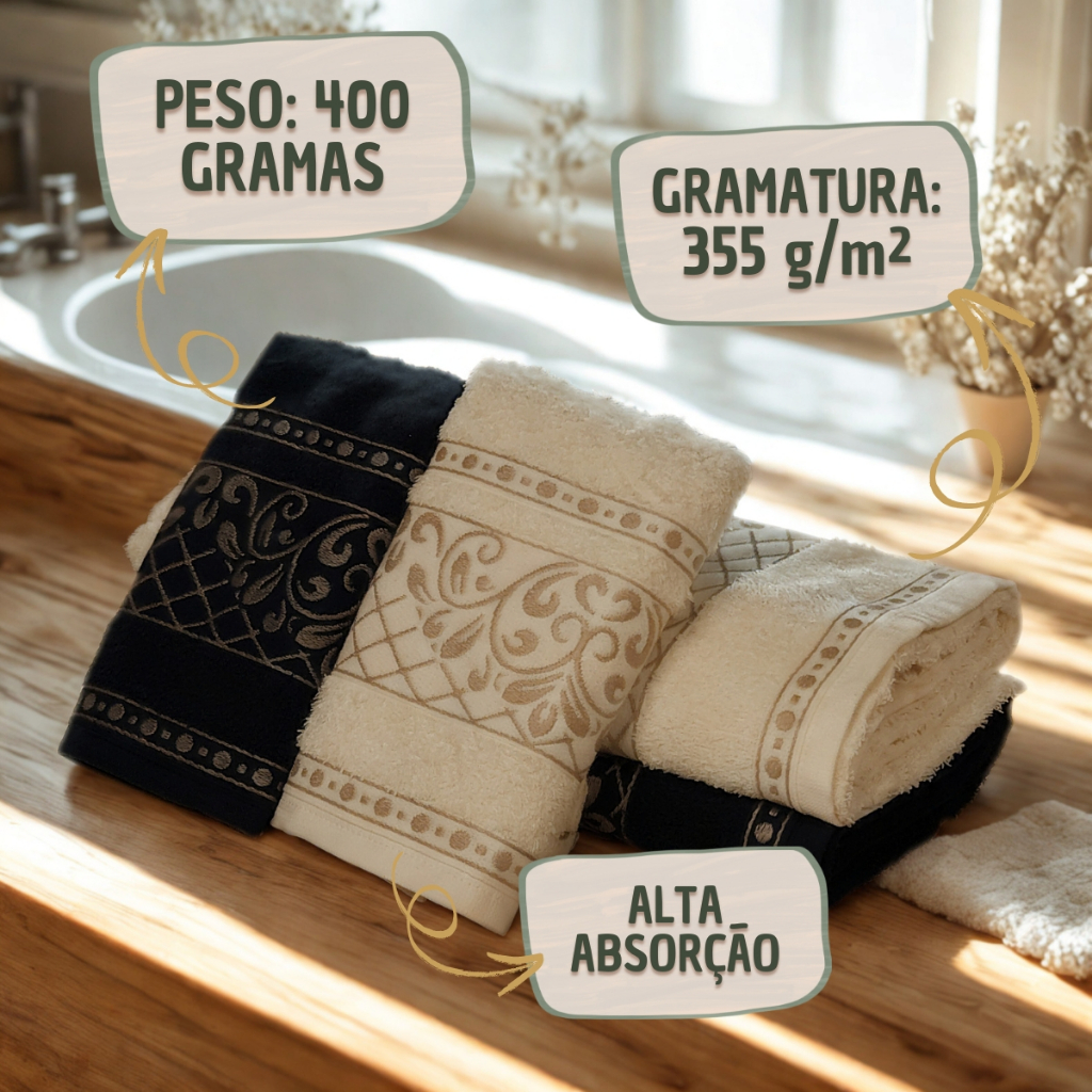 Kit 4 Toalhas Banho e Rosto 100% Algodão Macias Alta Absorção Agatha
