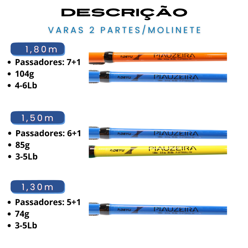Vara de Pesca Molinete Piauzeira 4-6 lbs DEYU Ultra Light Batidinha Piau Piapara 1,3m 1,5m 1,8m