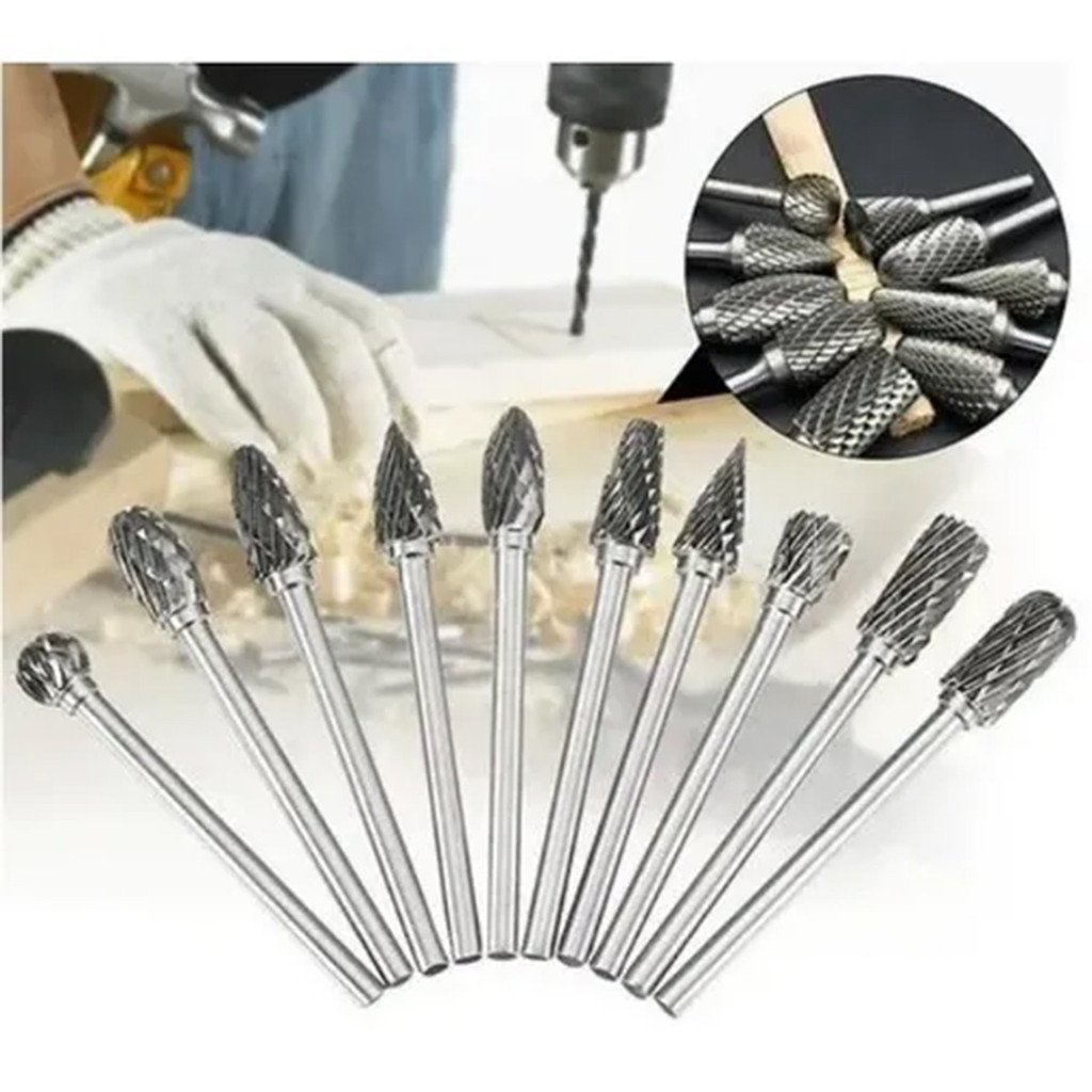 Kit 10 Fresas Rotativas Tungstênio 3mm Para Micro Retífica