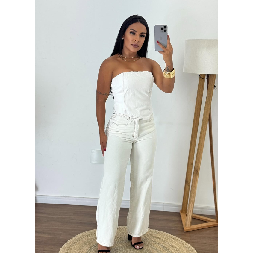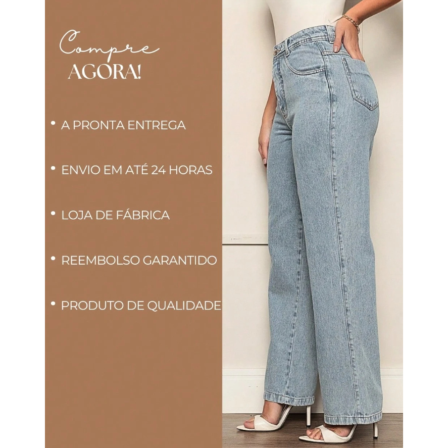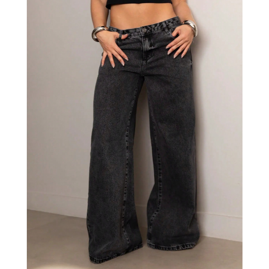 Calça Jeans Wide Leg Gaven Feminina Cintura Alta Tecido Grosso Marmorizado Estilosa