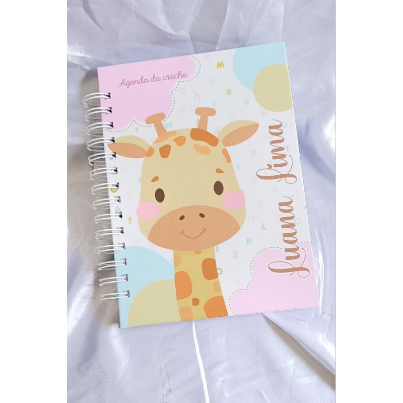 Agenda Creche personalizada, agenda Girafa, agenda Girrafinha, Agenda da creche, agenda fofa, agenda animais creche
