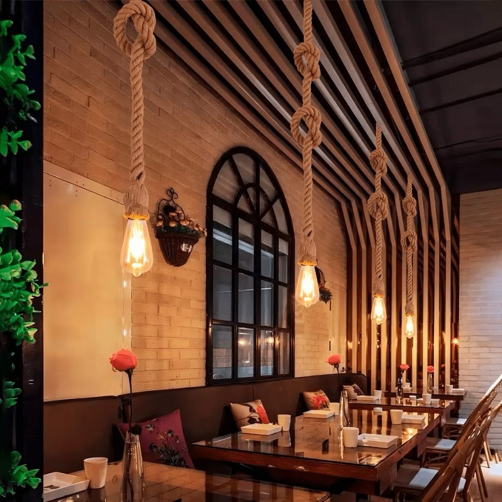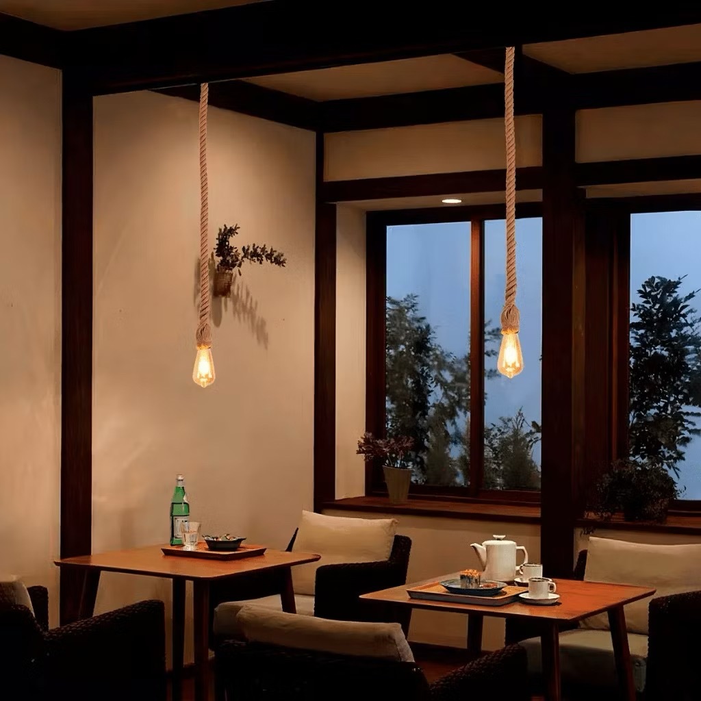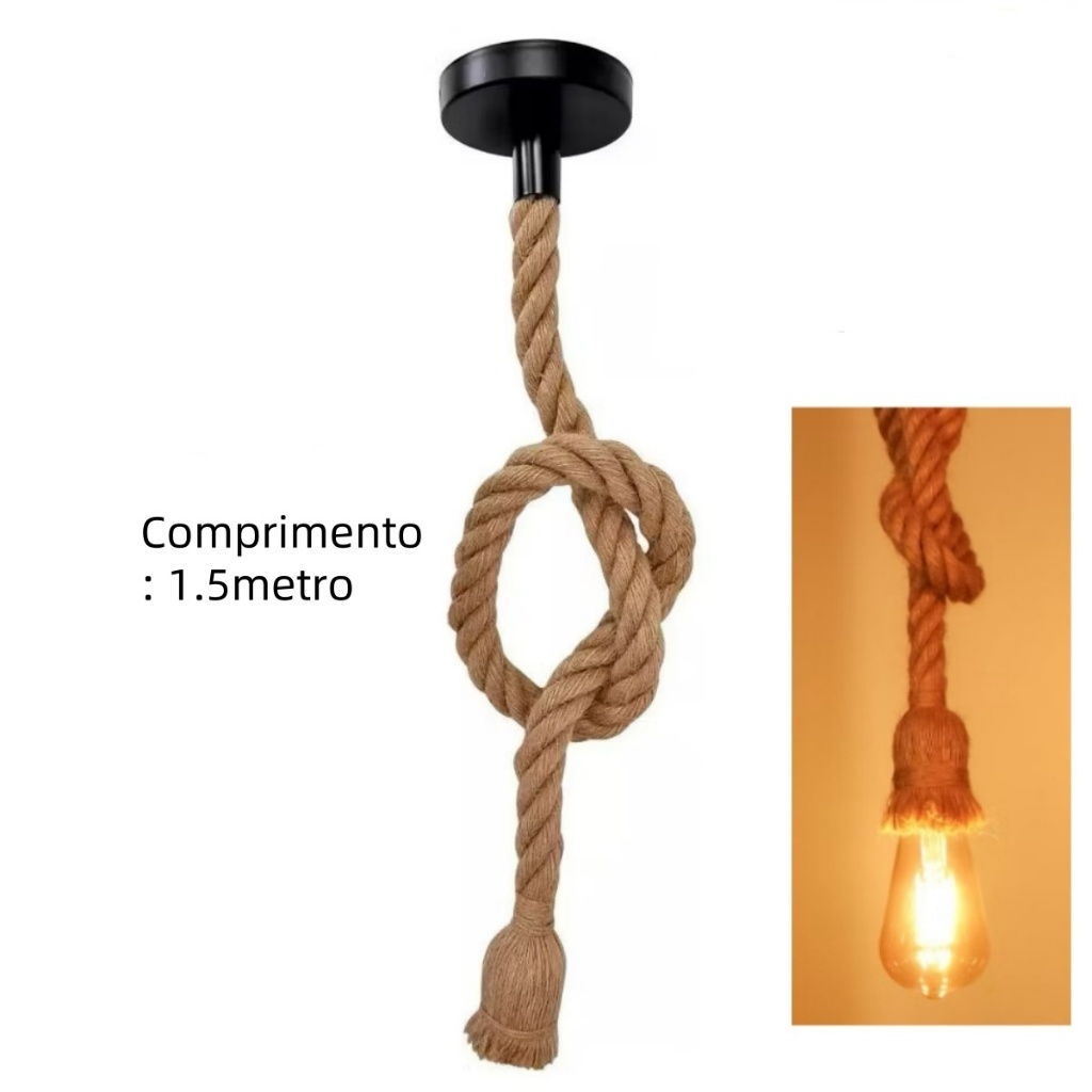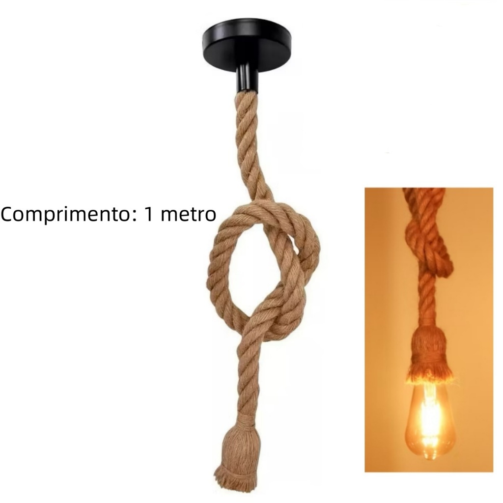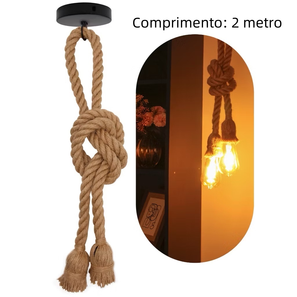 Corda de cânhamo pingente luzes vintage retro pendurado lâmpada e27 decoração industrial casa restaurante luminária edis