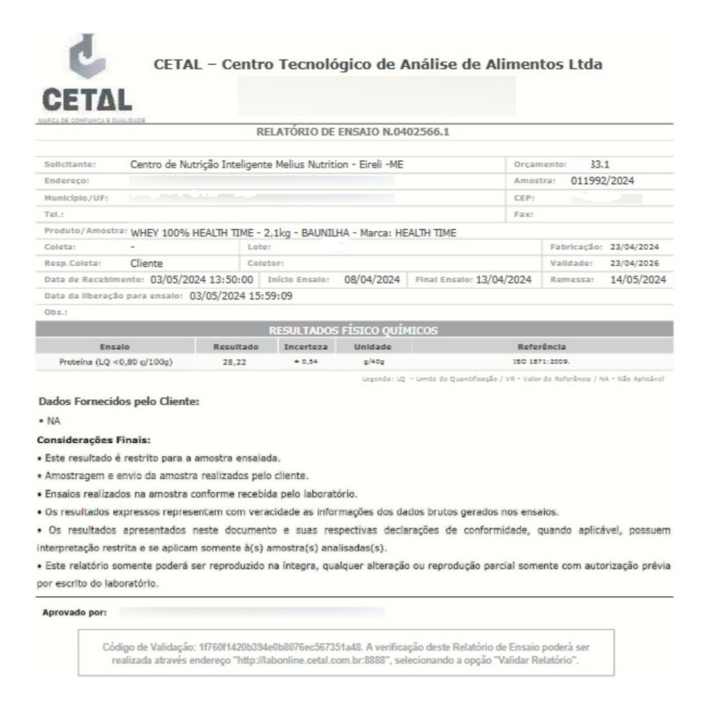 Whey Protein Health time 100% Isolado 2,1kg Zero Açúcar 32g Proteína