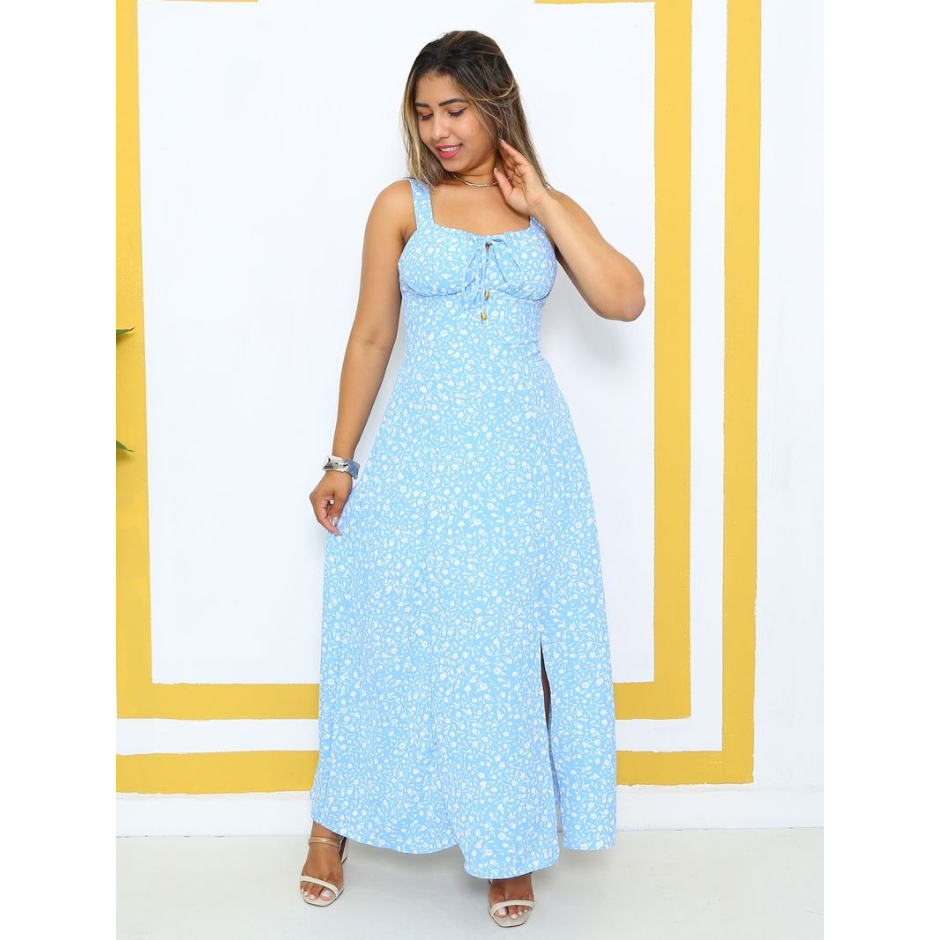 Vestido Longo Estampado Alça Grossa Feminino