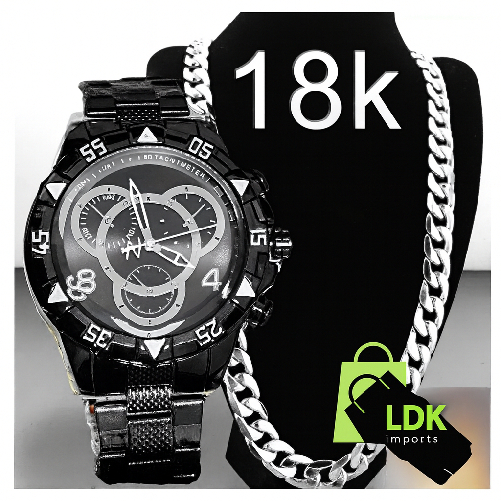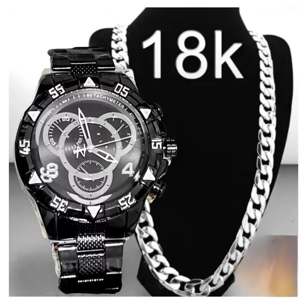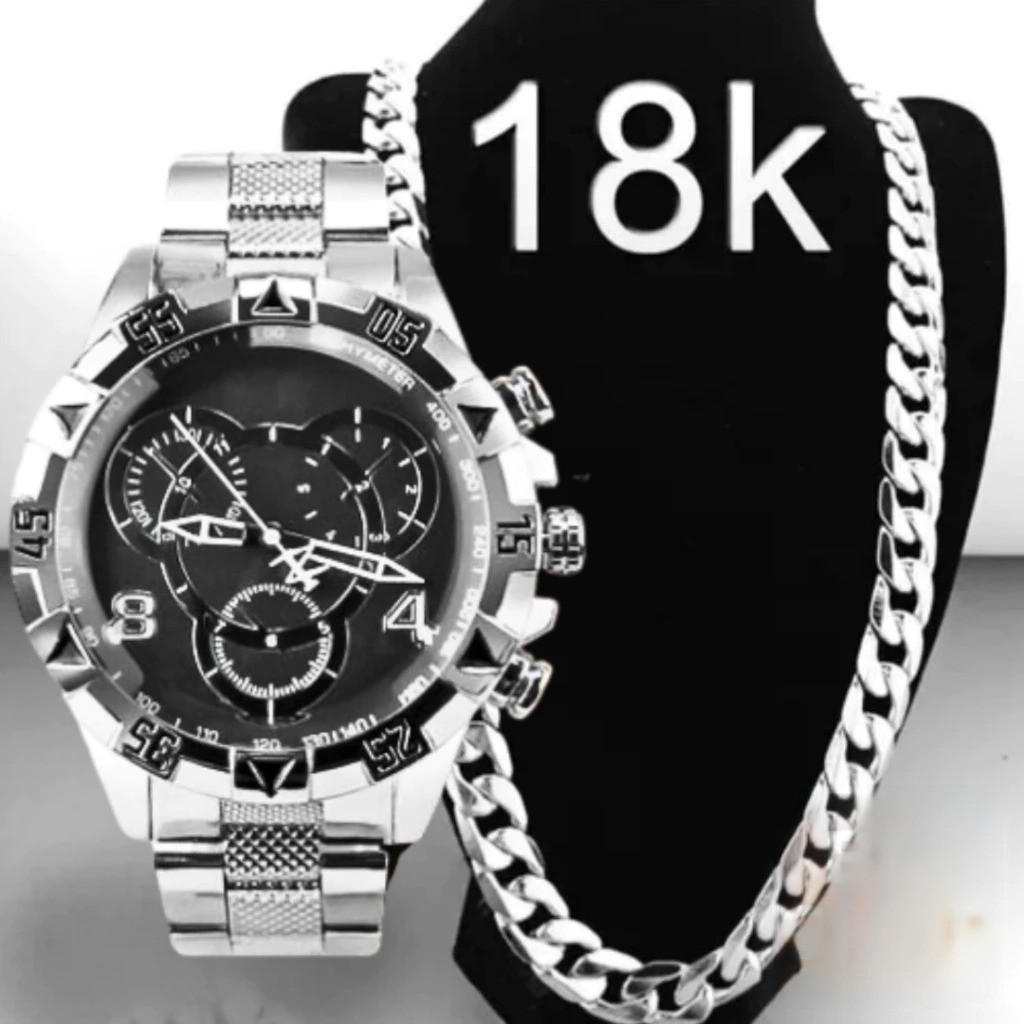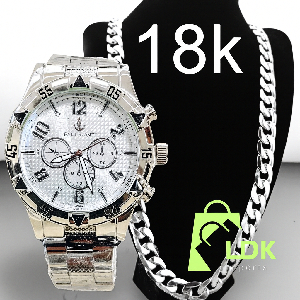 Relógio Masculino Prata Dourado Banhado 18k + Corrente Grossa 18K
