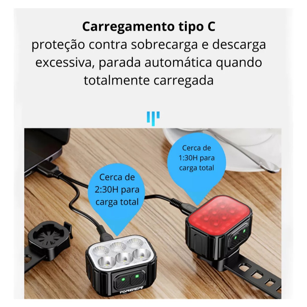 Kit Farol + Lanterna Traseira Recarregável USB Bike 6 Leds Ecooda EC6906