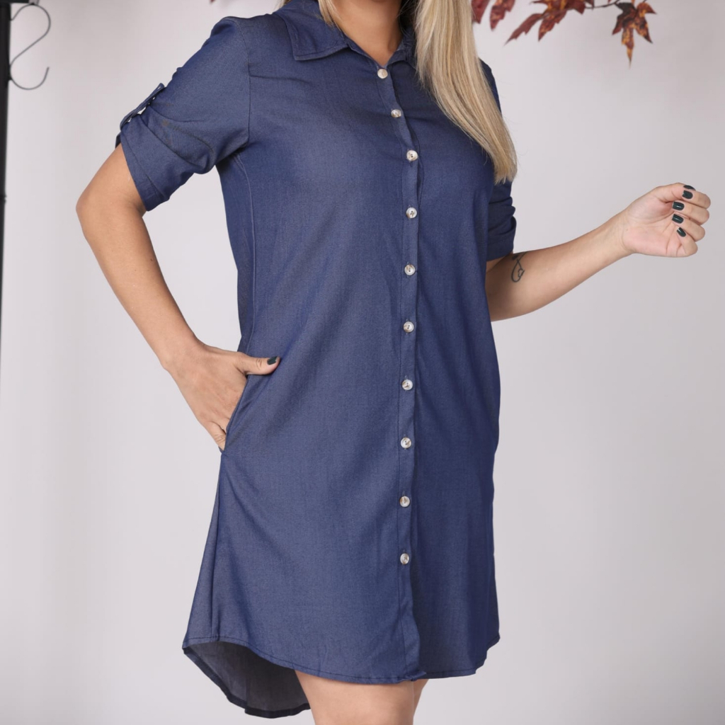 Chemise Jeans Feminina Elegante Chambray Manga 3/4 Fecho em Botões Disponível nos M, G e GG G1