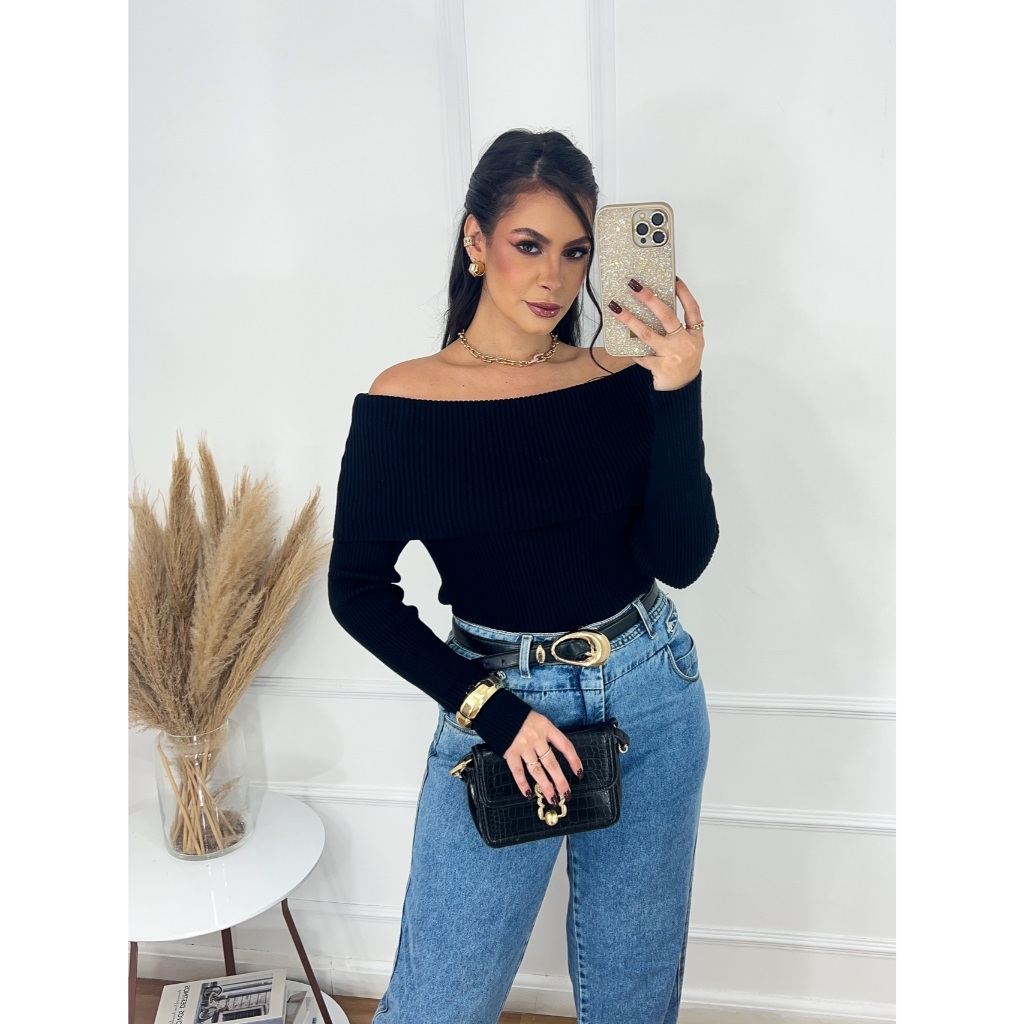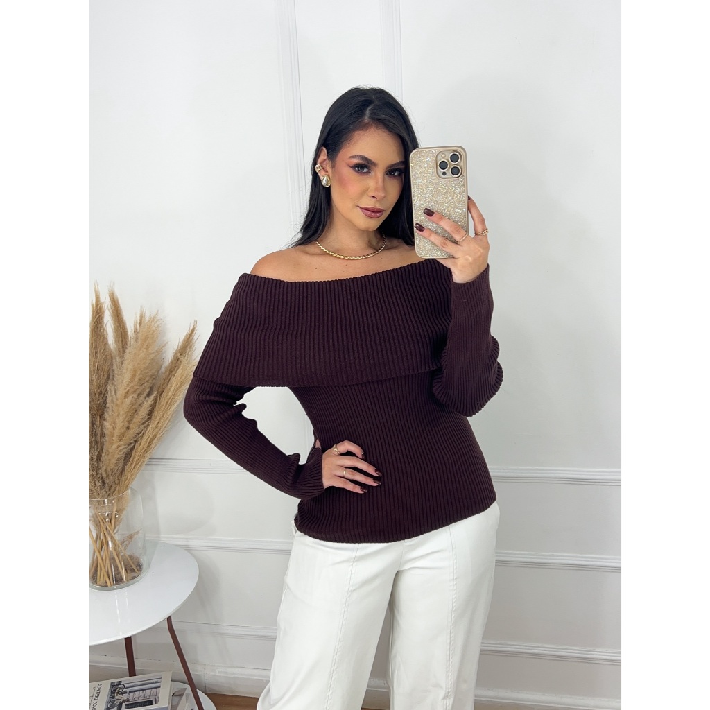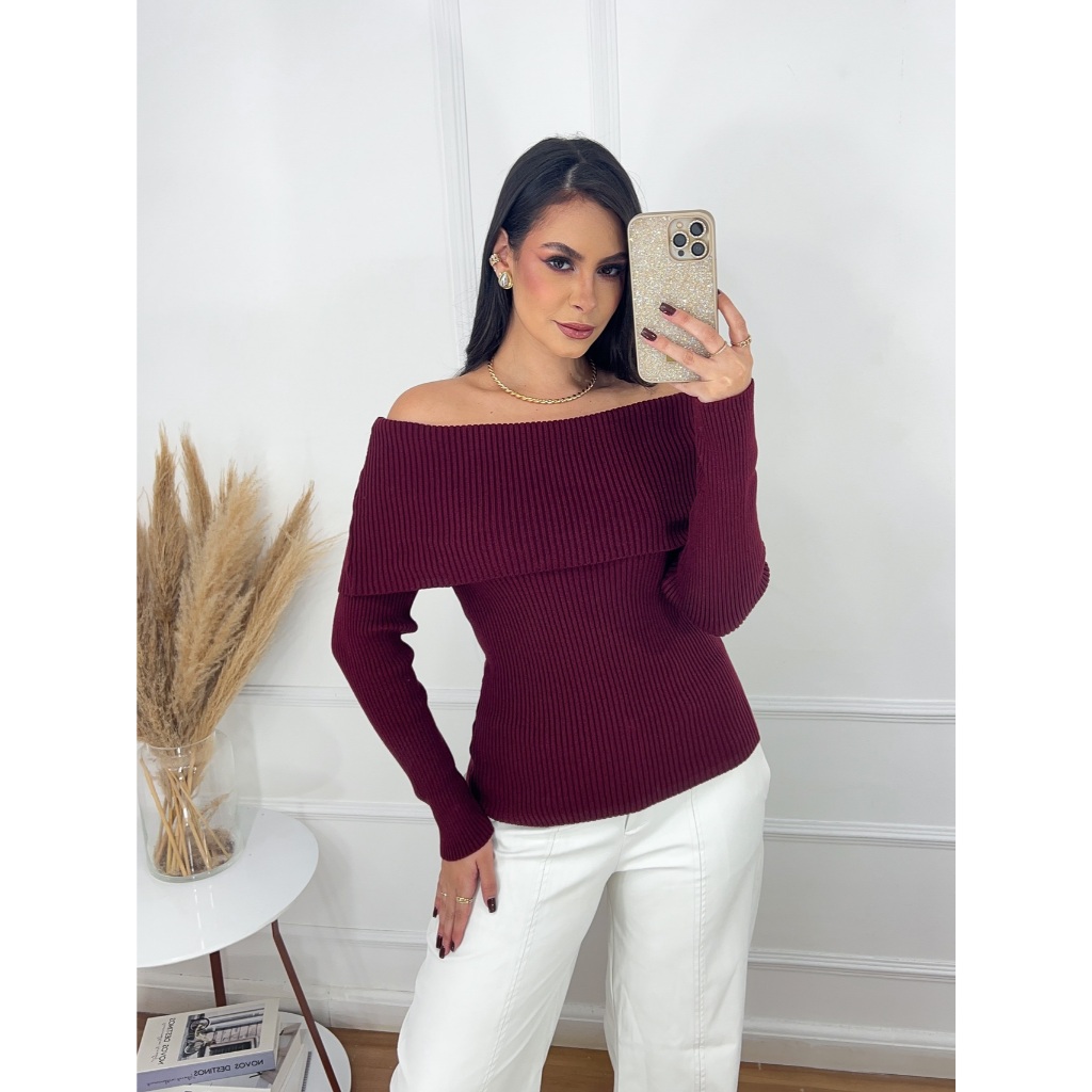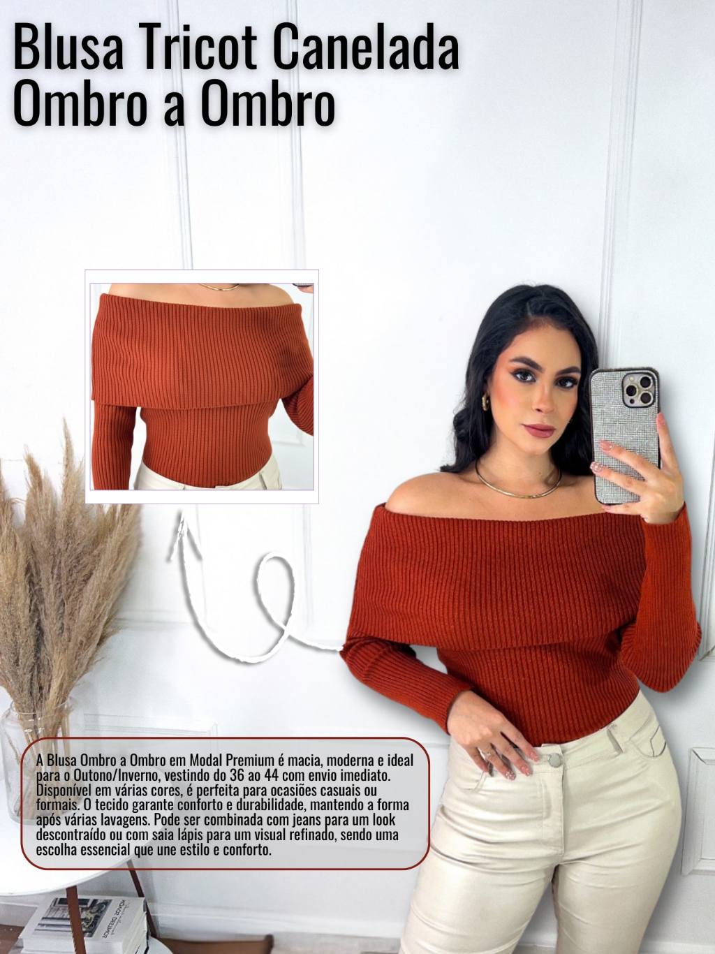 Blusa Tricot Canelada Ombro a Ombro feminino No Modal Premium Outono Inverno