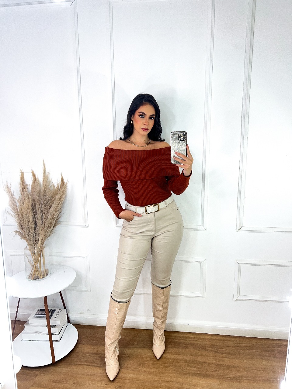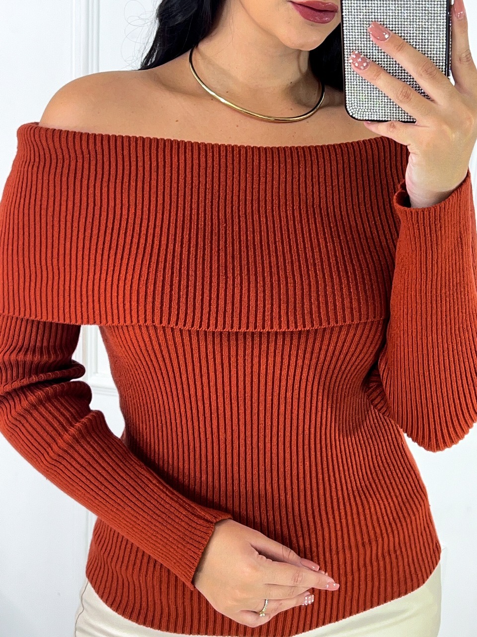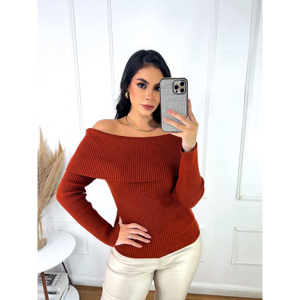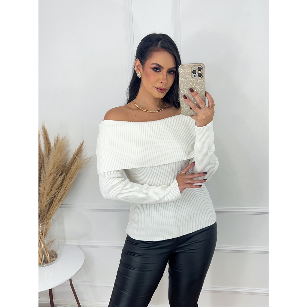 Blusa Tricot Canelada Ombro a Ombro feminino No Modal Premium Outono Inverno