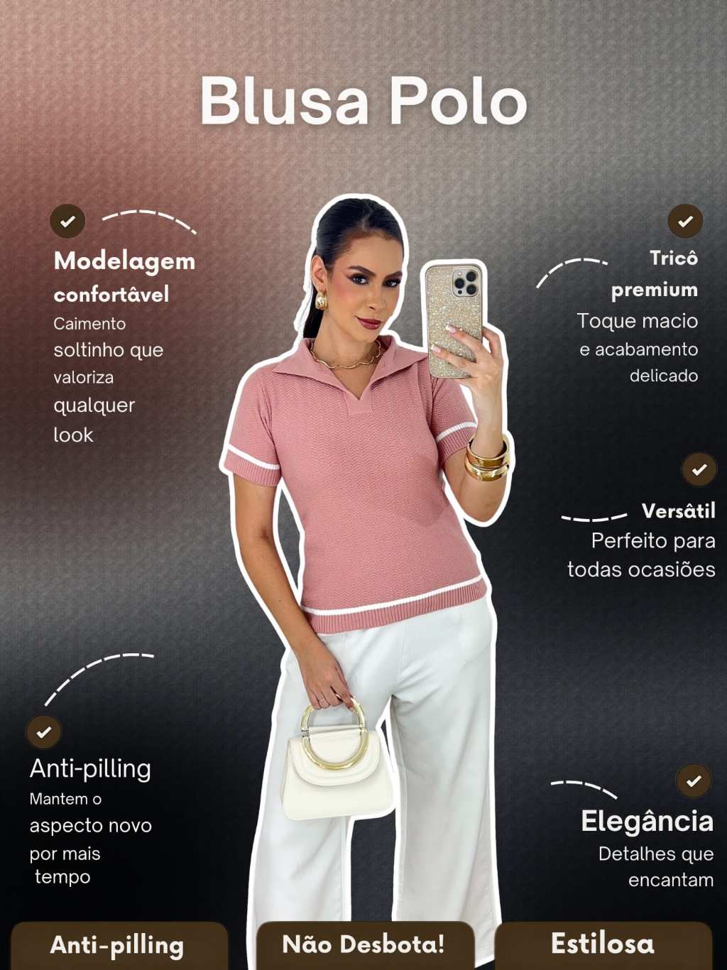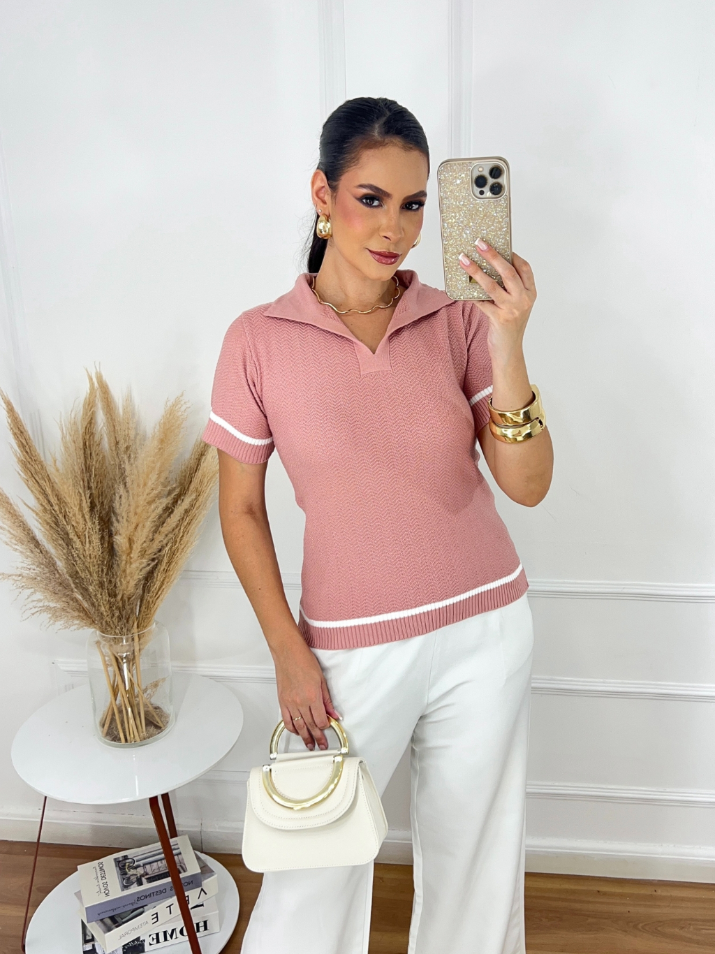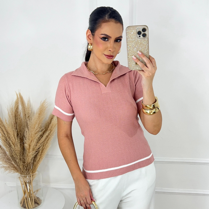 Blusa Gola Polo Feminina Casual Elegante Confortável Verão Tricot Macio Premium
