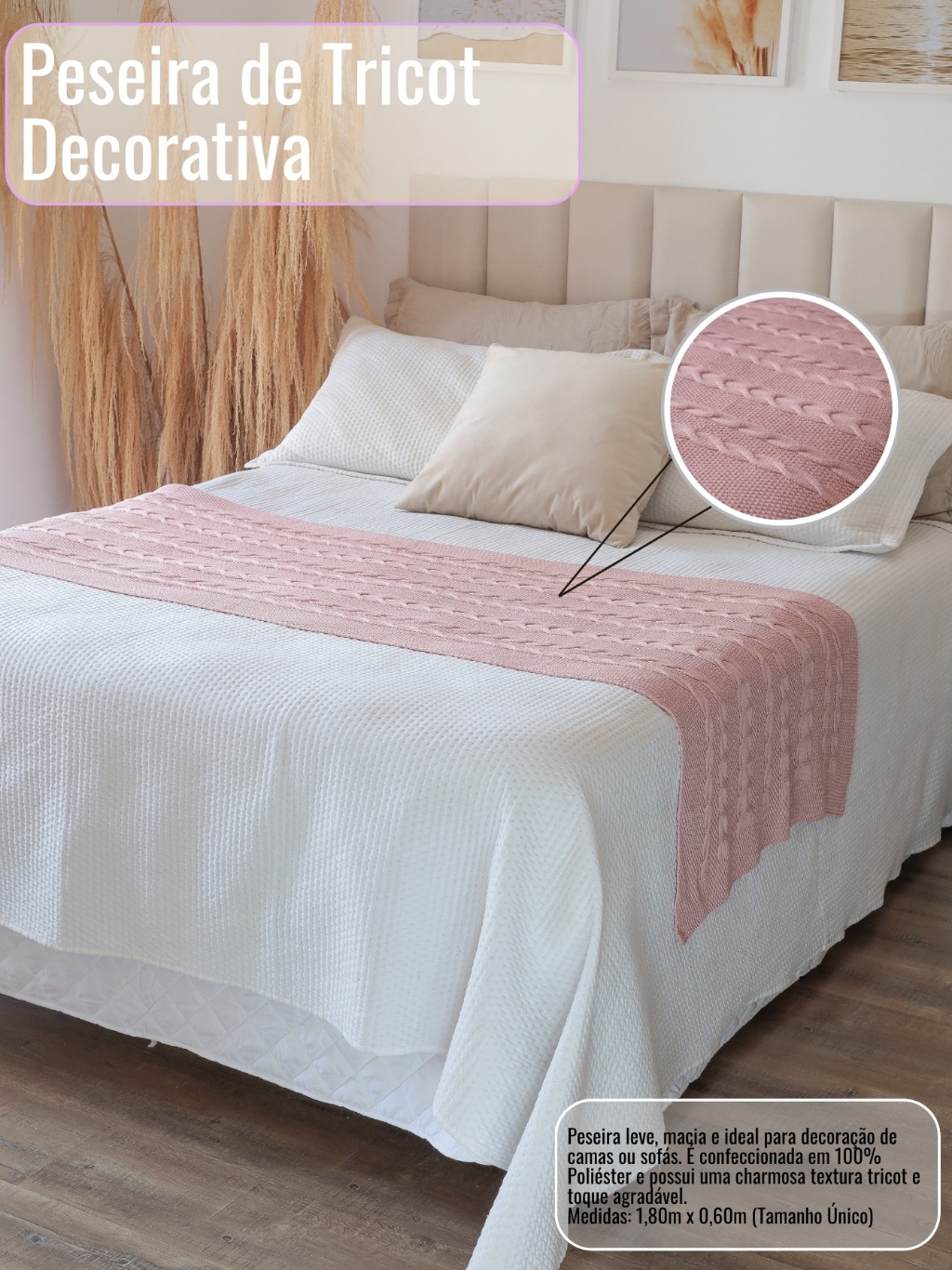 Manta Peseira Tricot Premium Decorativa Cama Sofá 1,80x0,60 Leve Aconchegante