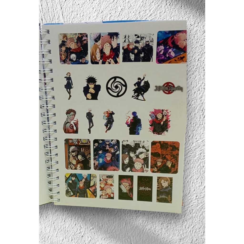 Caderno capa dura Jujutsu kaisen 1 matéria 20x27,5cm Wire-o com 96 folhas, incluso adesivos. COD.37