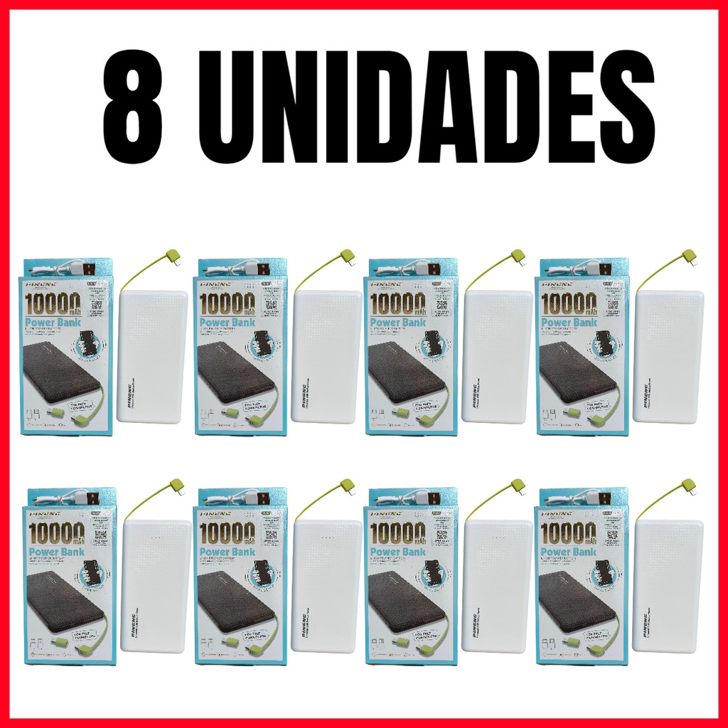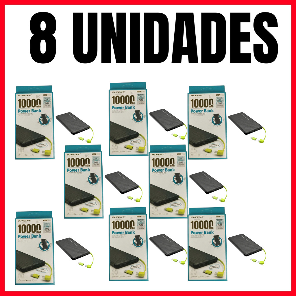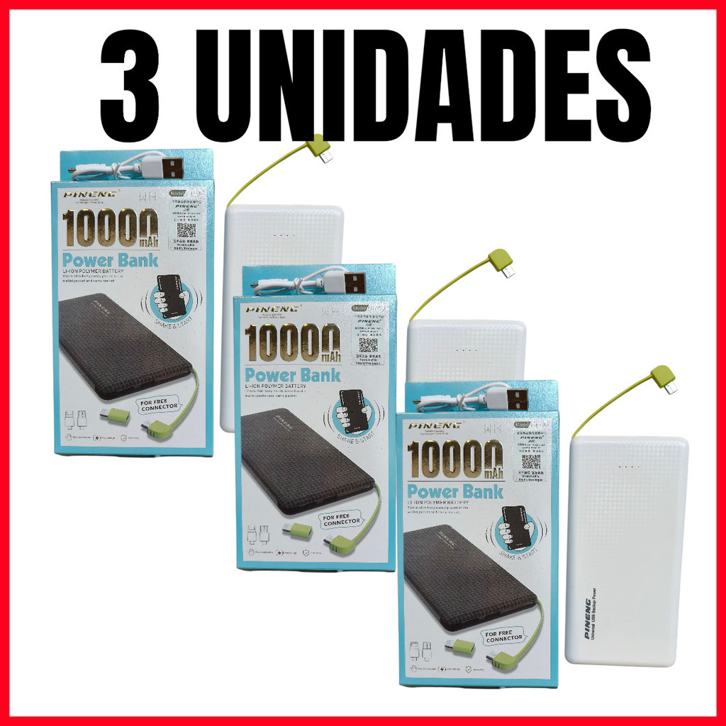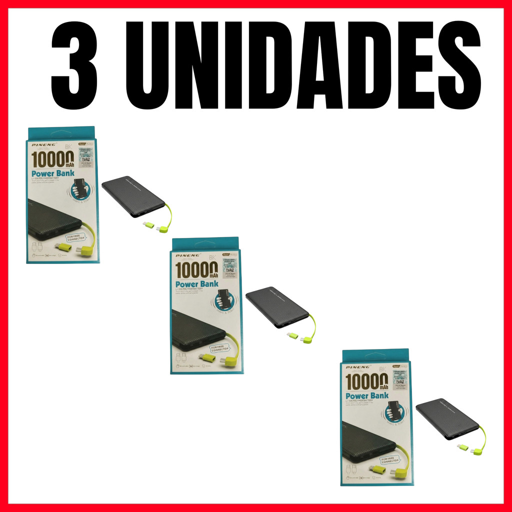 kit 3/8 Power Bank 10000mAh Slim PN-951 Carregador Portátil Bateria Externa Rápida