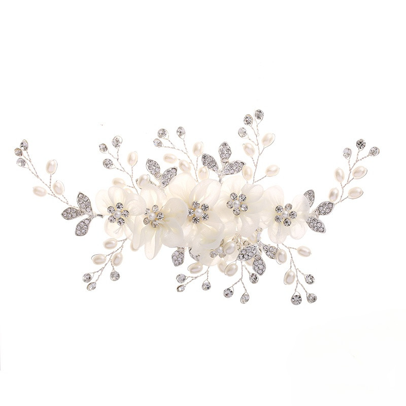 Grampo De Cabelo De Noiva De Casamento De Flor De Pérola Artificial Com Um Pouco De Strass Decorativo , Elegante