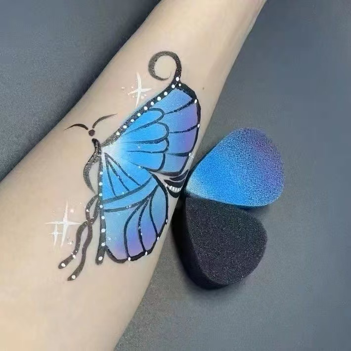 Novo 9 estilos de esponja de pintura corporal, esponja de gota de água em forma de borboleta pintada