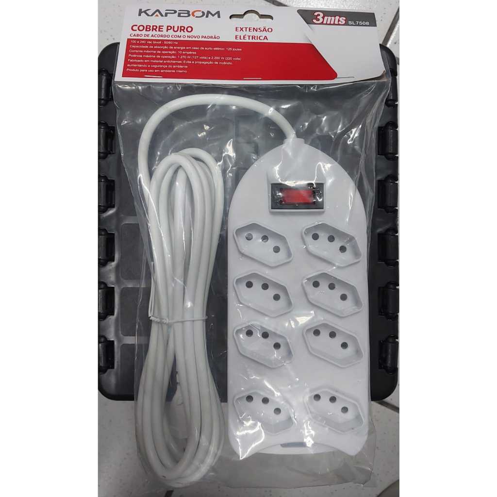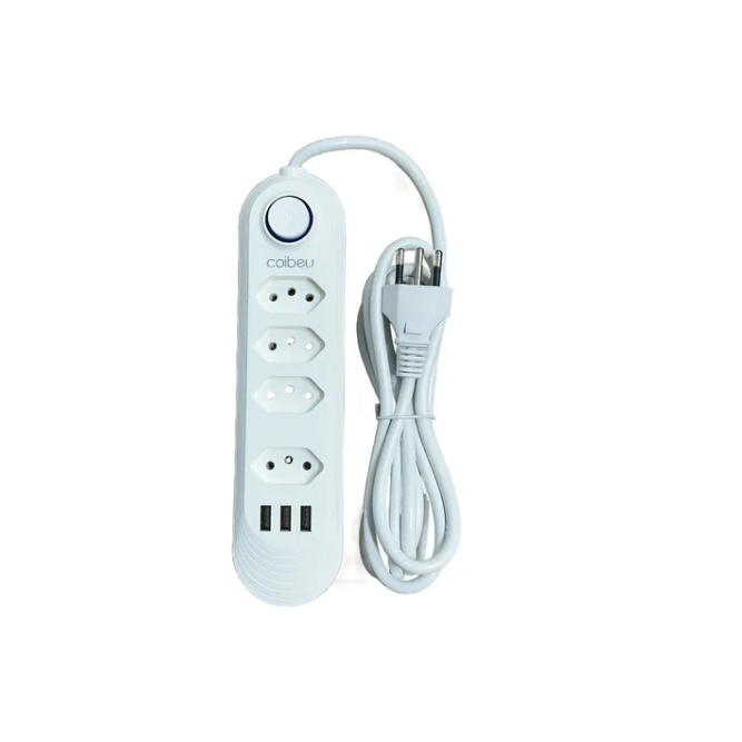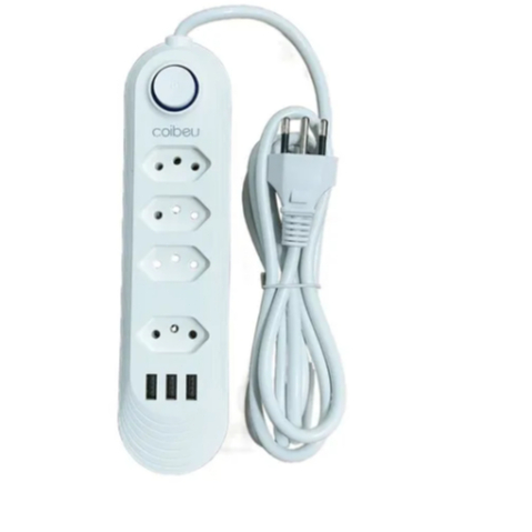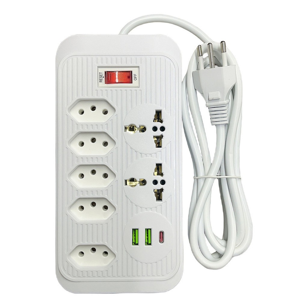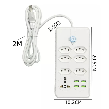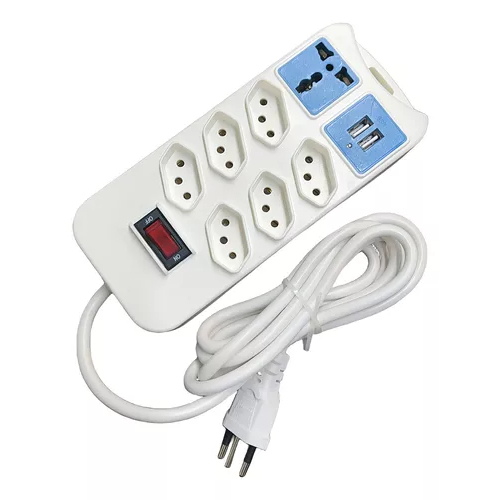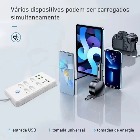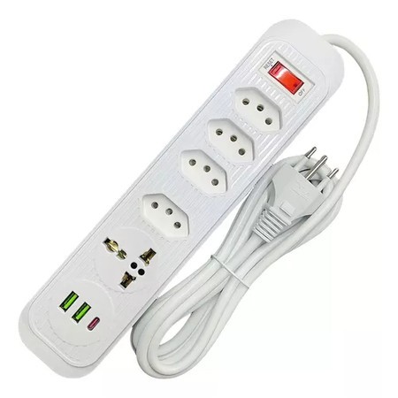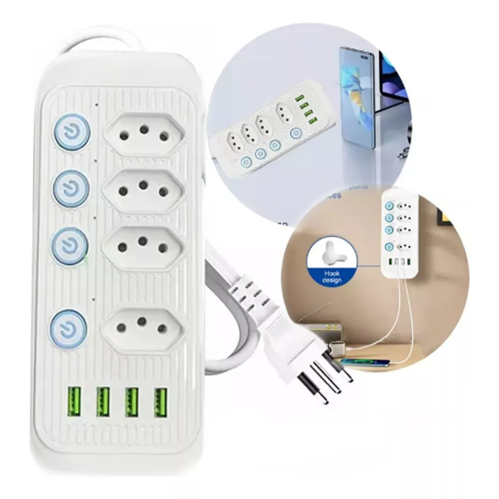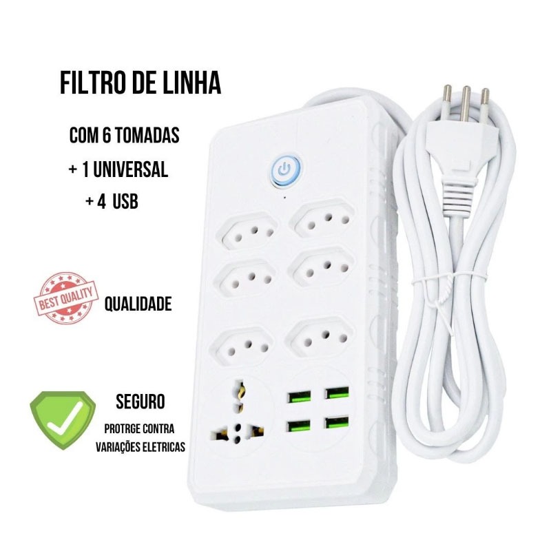 Régua Filtro de Linha com 7 Tomadas Extensão Elétrica 1 Universal 4 USB Bivolt 10A Cabo de 2 Metros