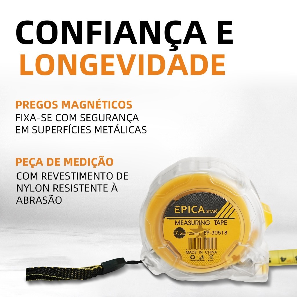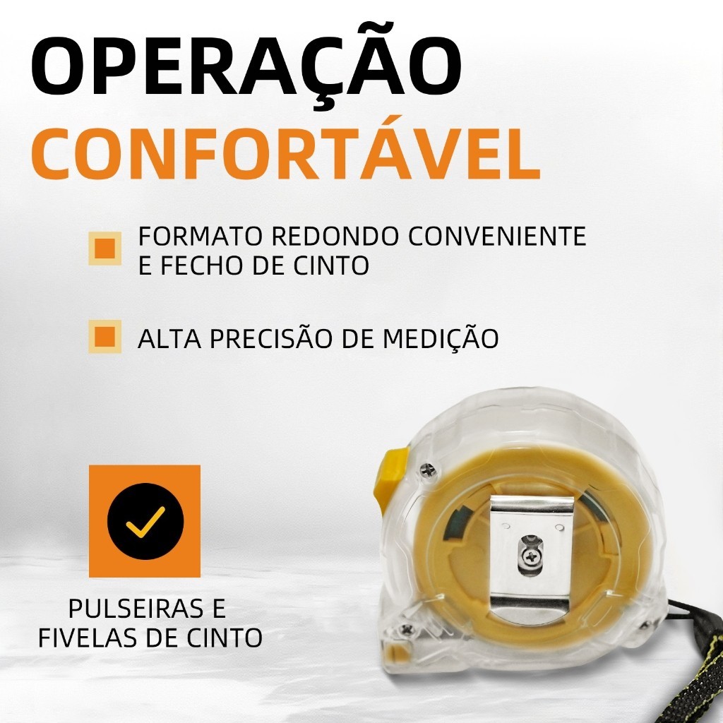 Trena Métrica 3/5/7.5/10m Profissional | Fita Aço c/ Trava e Cabo Emborrachado