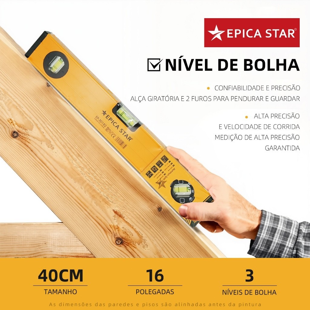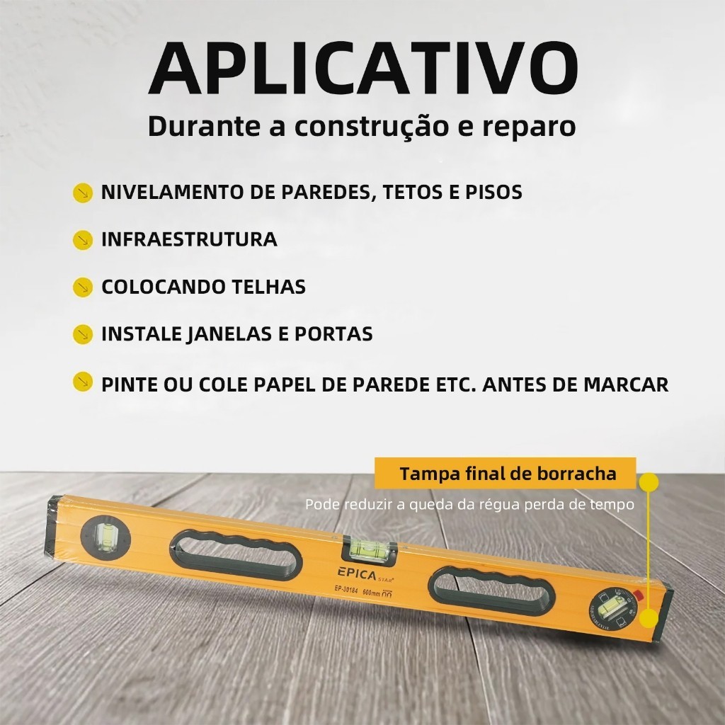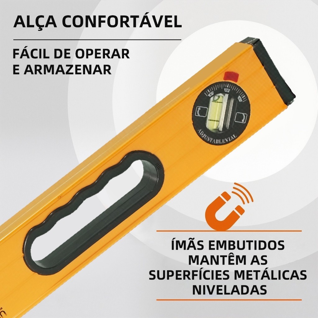 Régua Nível 3 Bolhas 40-120cm (ABS) | Kit Completo c/ Prumo p/ Pedreiro e Carpinteiro