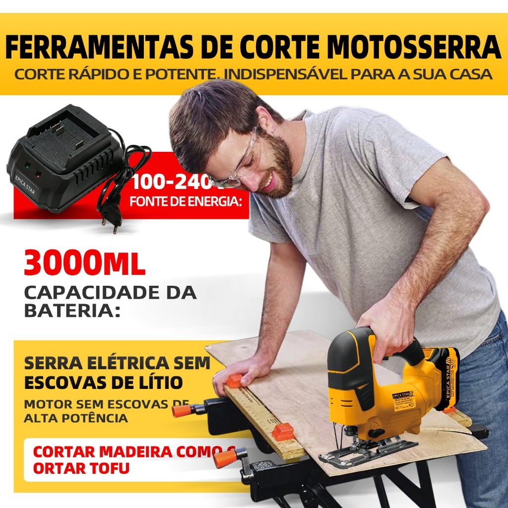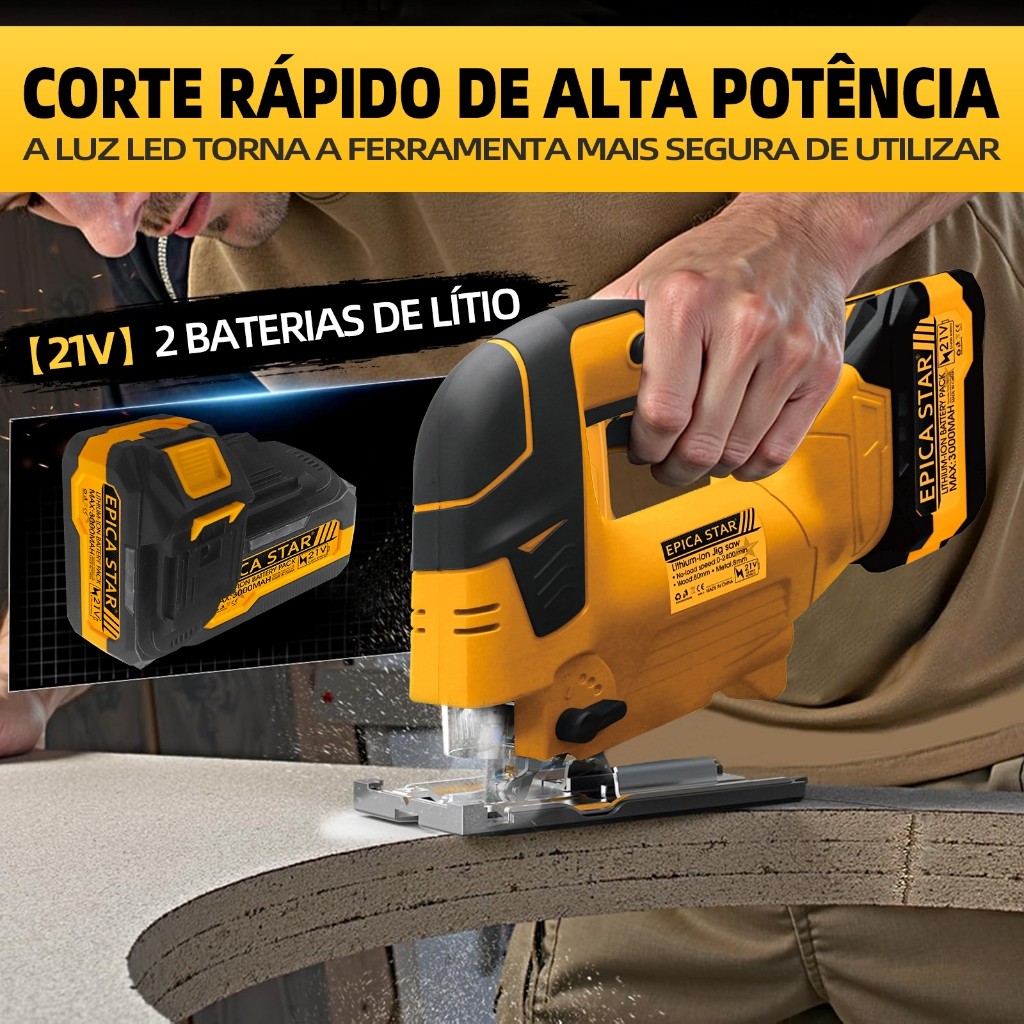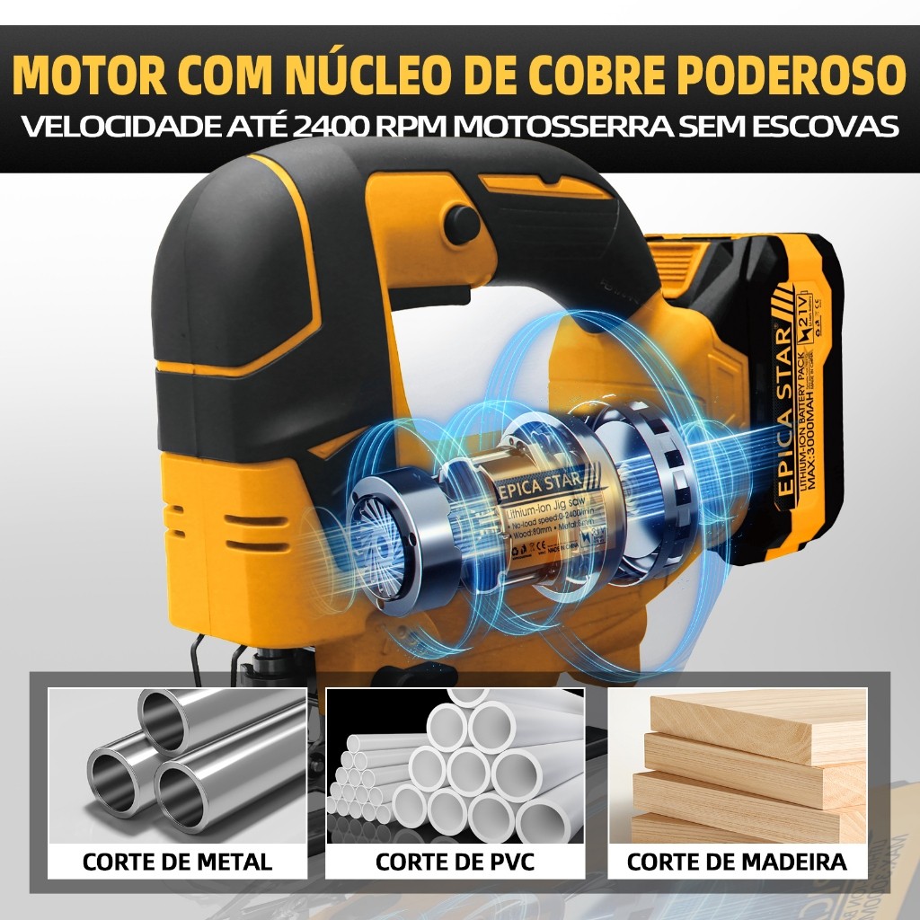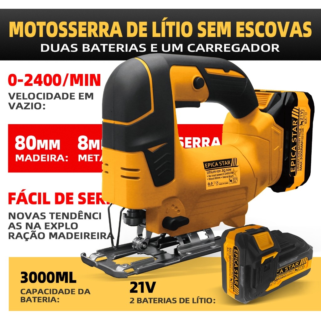 Serra Tico-Tico 21V sem Escovas - Kit Completo c/ 2 Baterias e Carregador