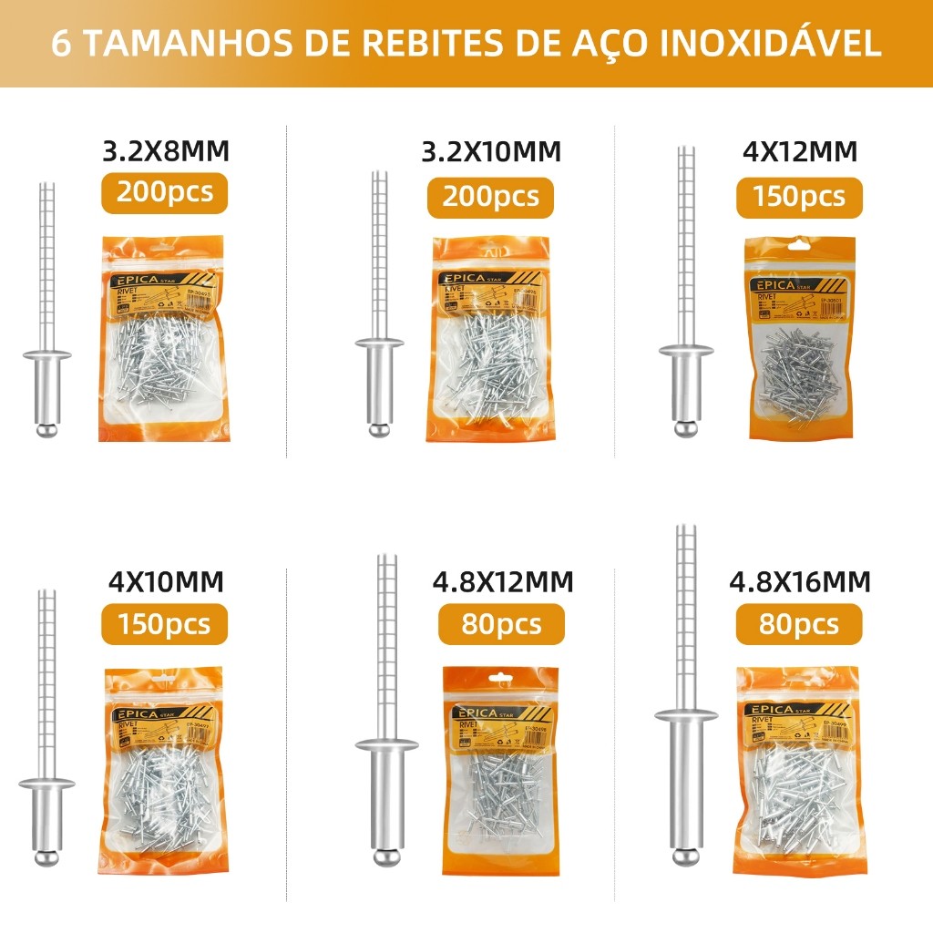 Kit 200 Rebites Pop Alumínio | Diversos Tamanhos p/ Reparos