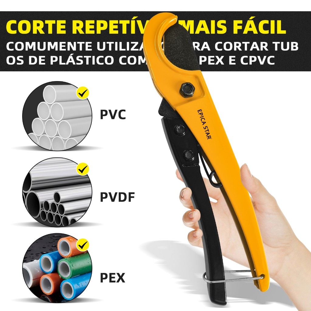 Cortador de Tubos EPICA STAR 33mm - Tesoura para PVC, PEX, PVDF, Corte Preciso e Fácil