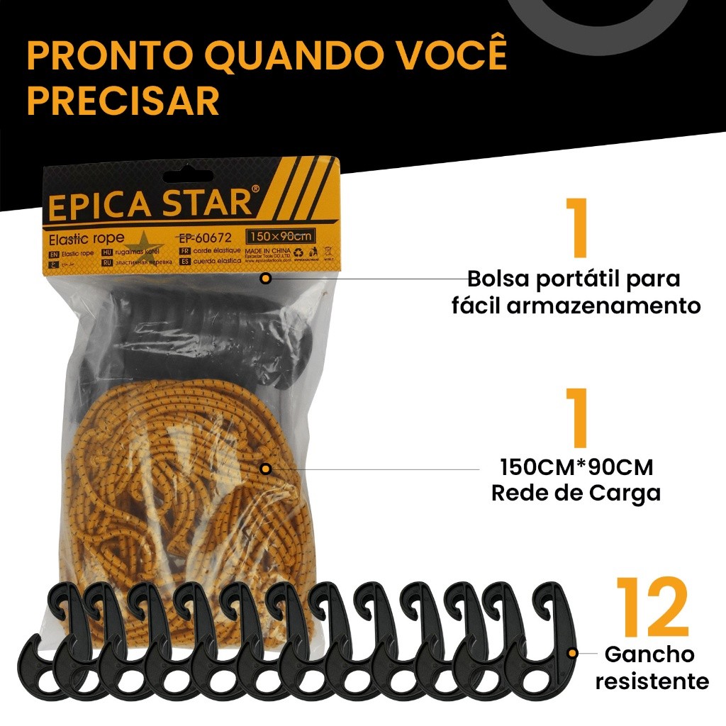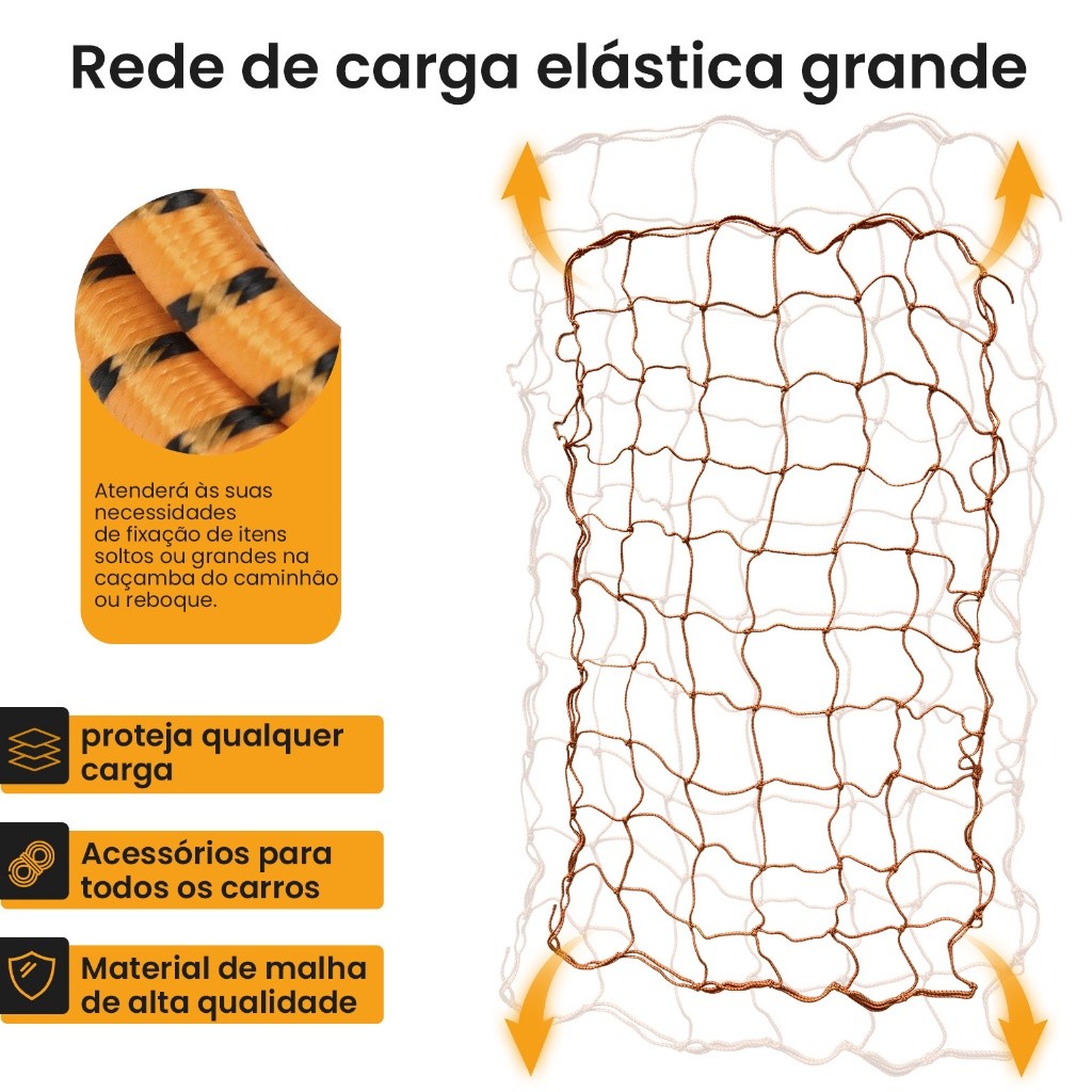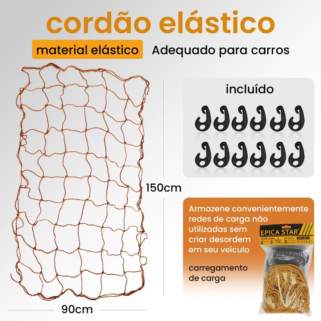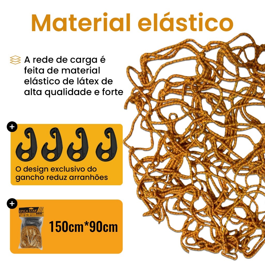 Rede de Carga Elástica 150x90cm - 12 Ganchos para Pesca e Transporte Seguro