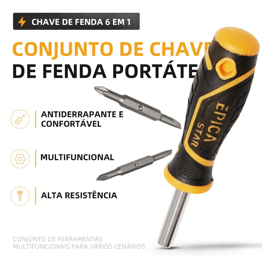 Kit Chave de Fenda 6 em 1 - Para Eletrônicos, Móveis e Reparos