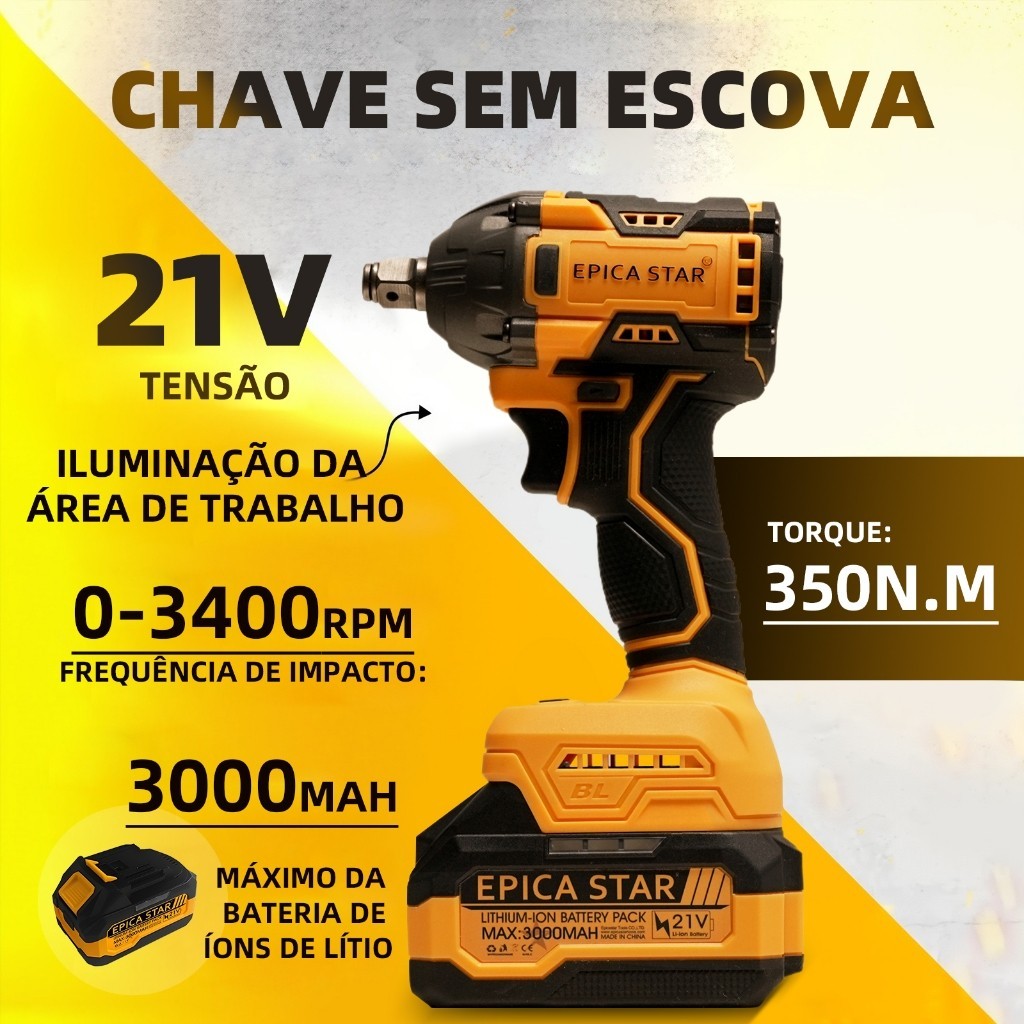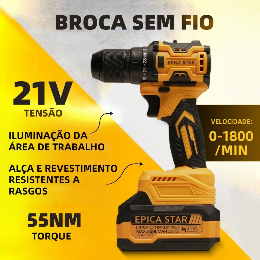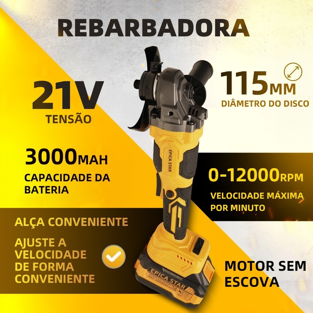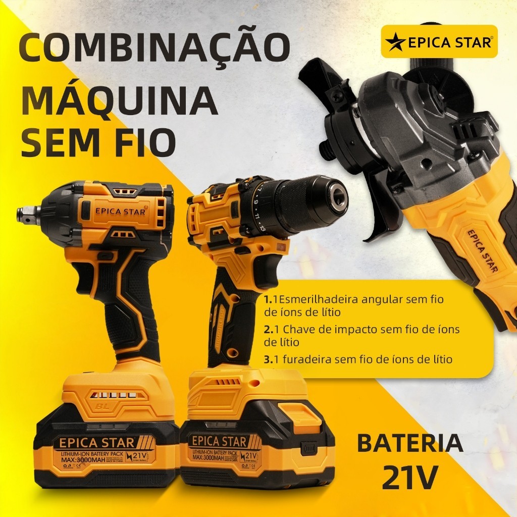 Kit 3em1 21V Brushless | Esmerilhadeira + Parafusadeira c/ Chave 1/2"