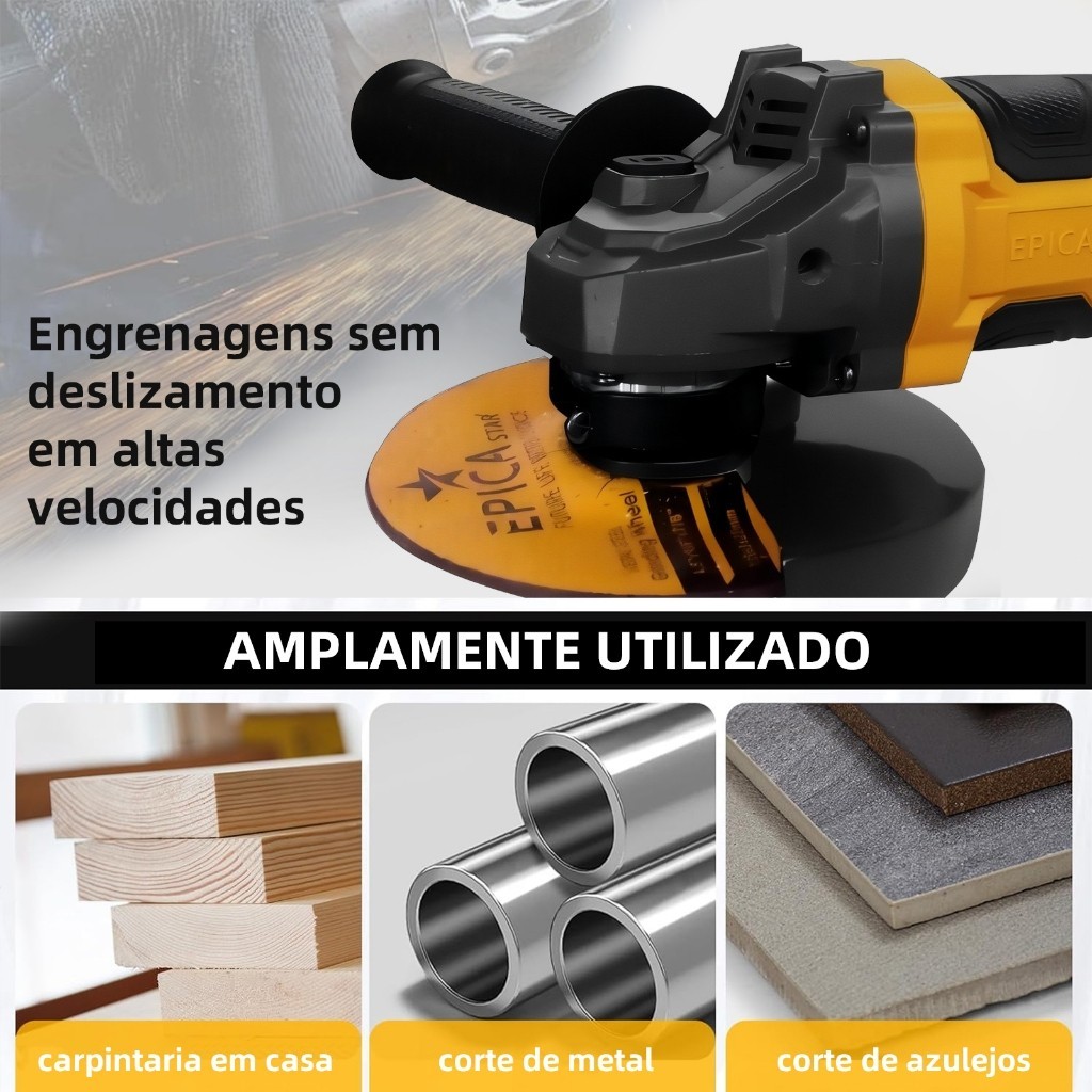 Esmerilhadeira Angular 21V 820W Brushless 115mm | 2 Baterias Li-ion 12000rpm Bivolt