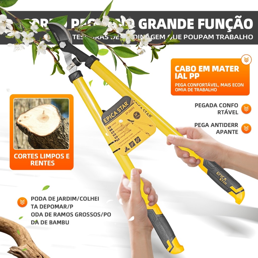 Tesoura Poda 71cm - Aço Carbono para Galhos Grossos com Cabo Antivibração
