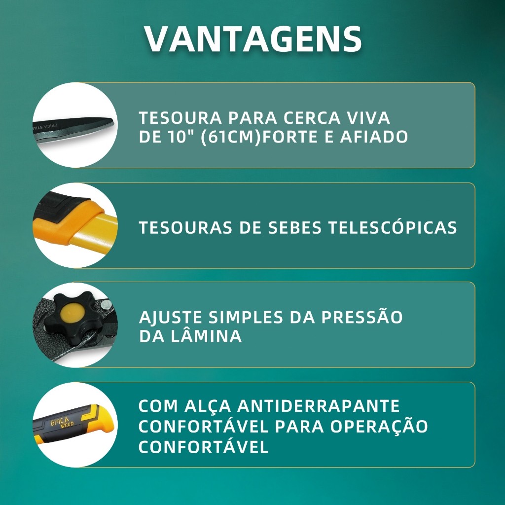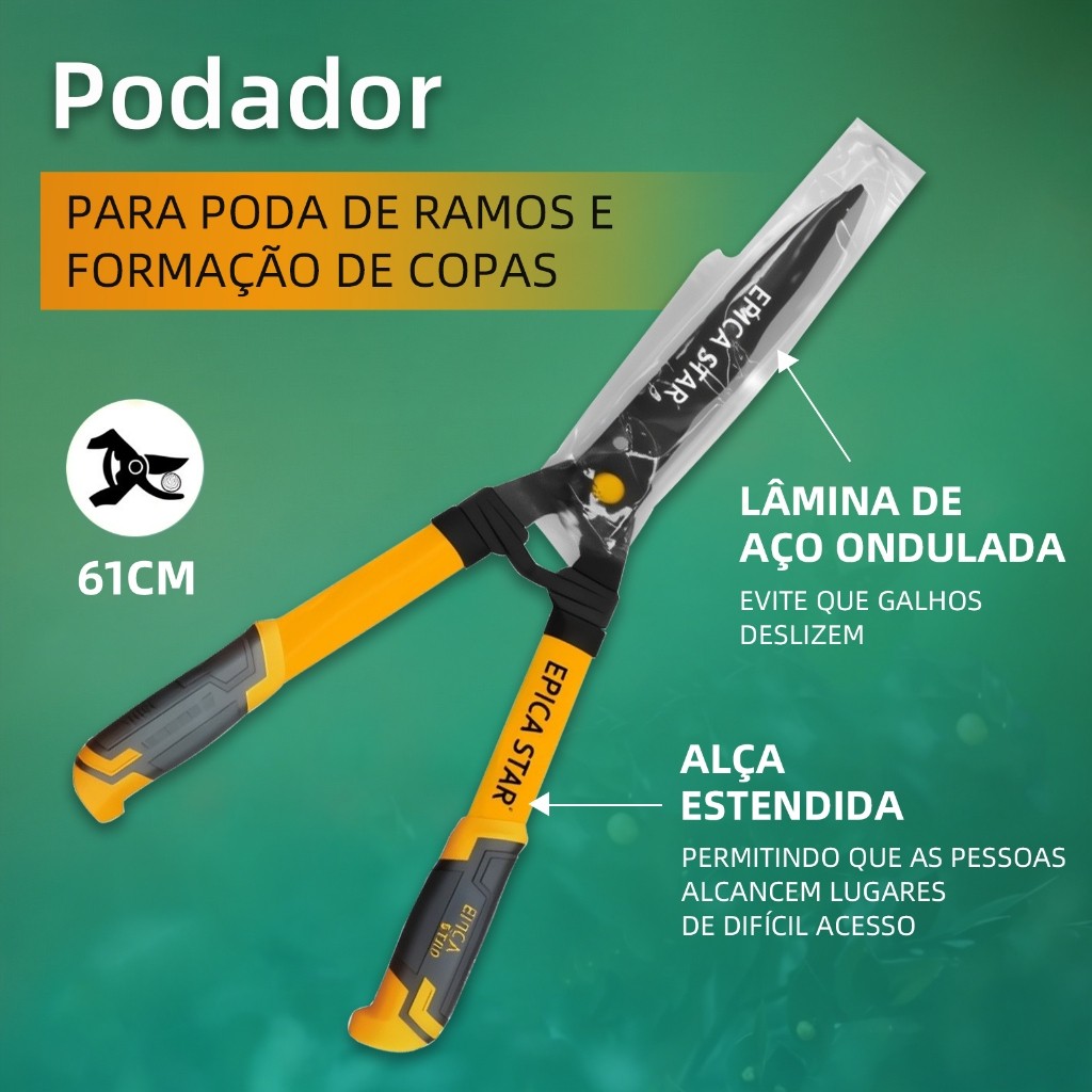 Tesoura Poda Profissional 61cm | Aço Carbono | Corte Galhos e Arbustos